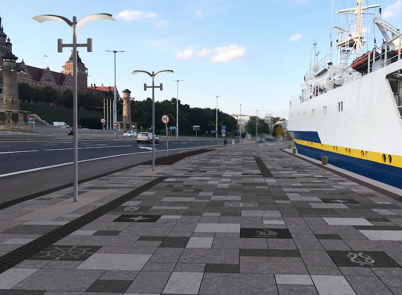 Na nabrzeżu użytkowanym przez Akademię Morską pojawiłyby się płyty granitowe z grafiką odwołującą się do symboliki morskiej.