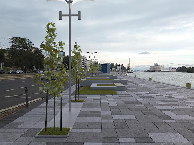 Główne założenia koncepcji projektowej to stworzenie atrakcyjnej przestrzeni publicznej dla mieszkańców i turystów oraz zastosowanie rozwiązań umożliwiających dostęp dla samochodów obsługujących jednostki pływające.