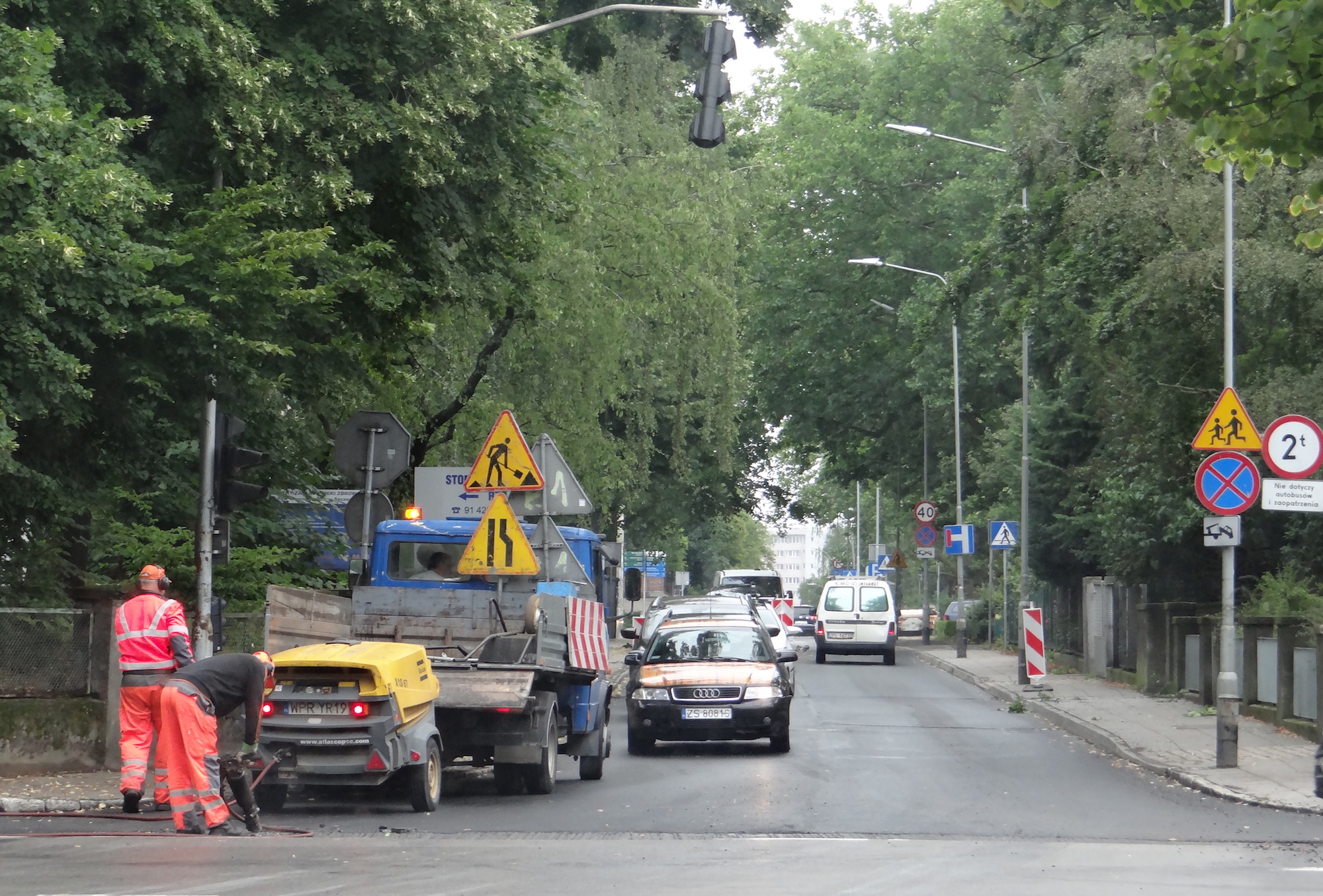 Od początku minionego tygodnia trwają tam prace przy wymianie nawierzchni jezdni. Roboty drogowe ekipy spółki Strabag prowadzą na odcinku od skrzyżowania z ul. Monte Cassino do ronda Jerzego Giedroycia. W związku z remontem nawierzchni kierowcy powinni też zapomnieć, że uda im się zaparkować auta na parkingu przyległym do Jasnych Błoni. Ten zaanektowali póki co także drogowcy.