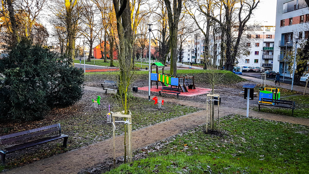 W całym, zapuszczonym dotąd parku, ułożono utwardzone alejki, a teren został oświetlony. Ustawiono ławki, kosze na śmieci, a w centrum tego miejsca skrzynkę z dostępem do prądu. Jest także oryginalny mini amfiteatr otoczony klinkierowym siedziskiem. Przebudowane zostały wejścia do zieleńca oraz powstały nowe schody wejściowe. Mieszkańcy mogą korzystać z rozbudowanej siłowni pod chmurką, stołów do gry w szachy. Zasiano trawniki i posadzono nowe drzewa oraz krzewy.