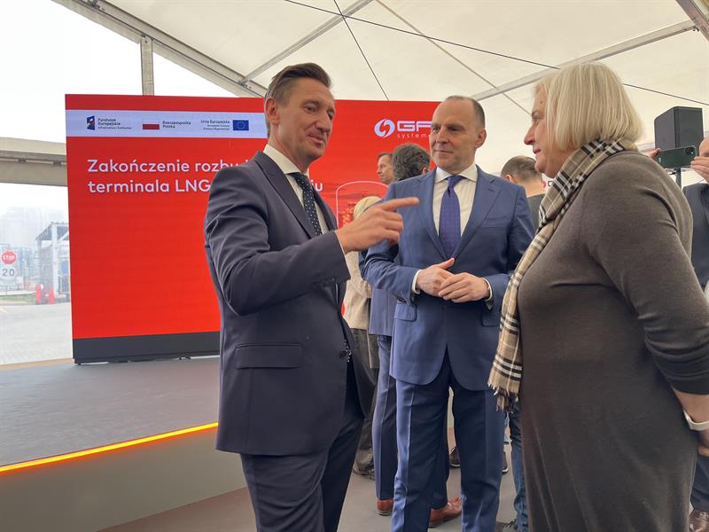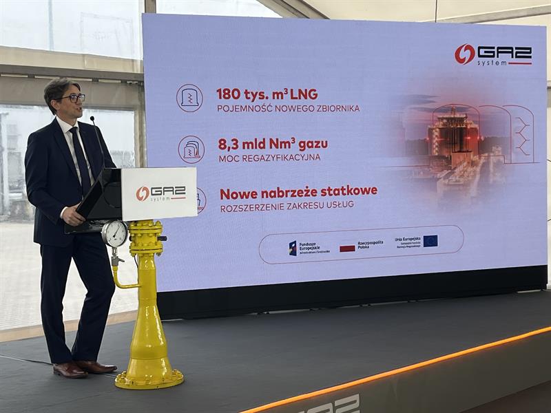 – Był to wieloletni proces, dzięki któremu mamy możliwość regazyfikowania tu ma miejscu ponad 8 mld m sześc. gazu rocznie, co pozwala zaopatrzyć prawie połowę polskiego rynku w gaz ziemny – powiedział Sławomir Hinc, prezes Gaz-Systemu.