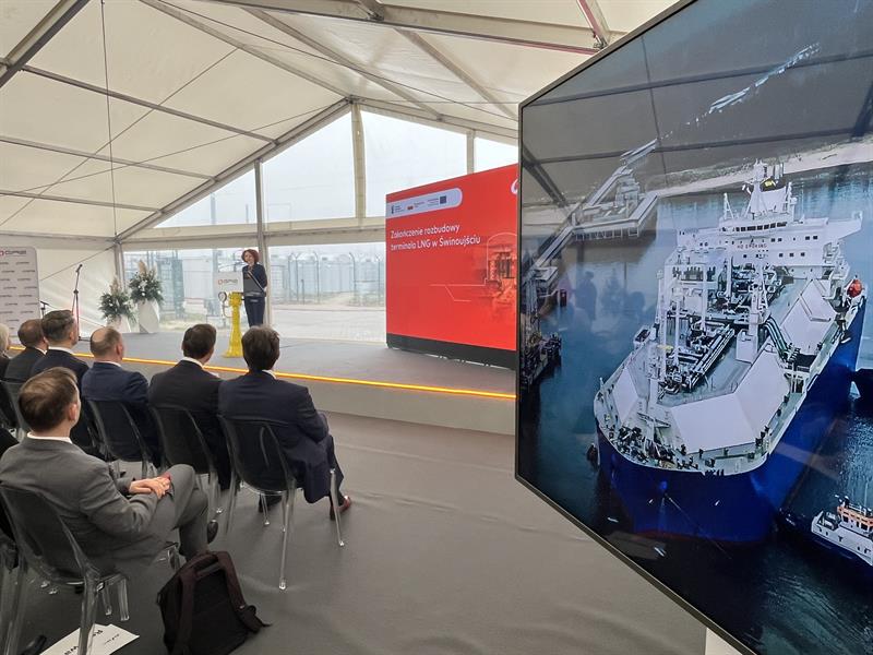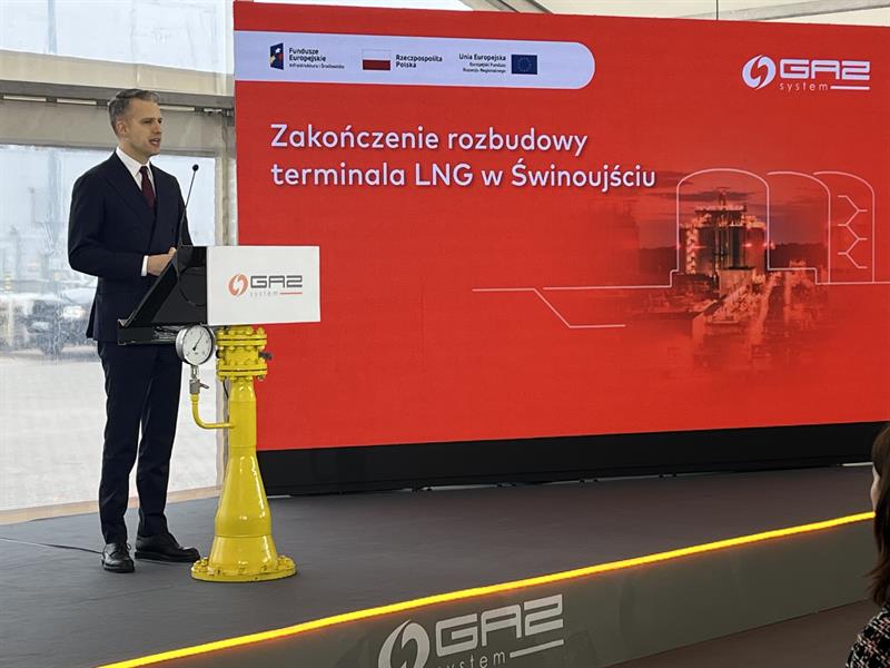 Zakończono rozbudowę Terminalu LNG im. Prezydenta Lecha Kaczyńskiego w Świnoujściu. Teraz można tu nie tylko odbierać, ale też eksportować skroplony gaz. To znacząco zwiększa konkurencyjność terminalu i wzmacnia międzynarodową pozycję Polski. Ponadto mogą tu tankować bunkierki zaopatrujące w paliwo statki z napędem LNG. Dzięki rozbudowie, moce techniczne świnoujskiej instalacji wzrosły do 8,3 mld m sześc. rocznie, poprawiając bezpieczeństwo energetyczne kraju. W środę (22 stycznia) na terenie terminalu inwestor, czyli Gaz-System, zorganizował uroczystą konferencję z okazji zakończenia przedsięwzięcia.