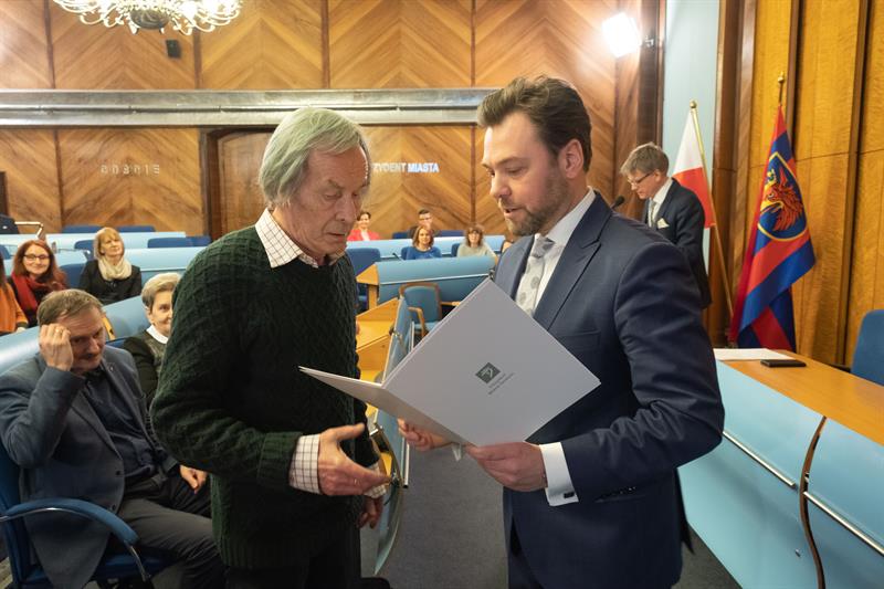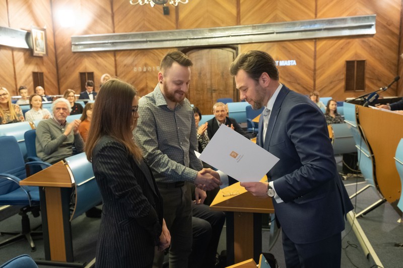 Na zdjęciu: Nagrodę od Daniela Wacinkiewicza odebrał promotor autorki zwycięskiej pracy, prof. Adam Maria Szymski.