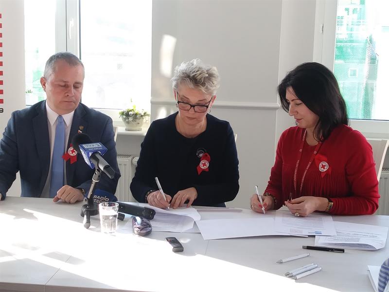 Na zdjęciu: Podpisania porozumienia na stulecie PCK. Od lewej: Józef Sekuła, Magdalena Zarębska-Kulesza i Joanna Łaskarzewska