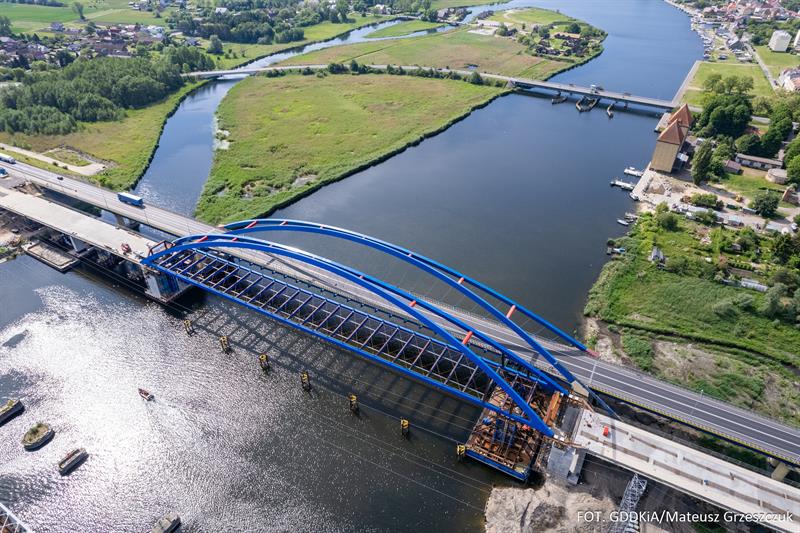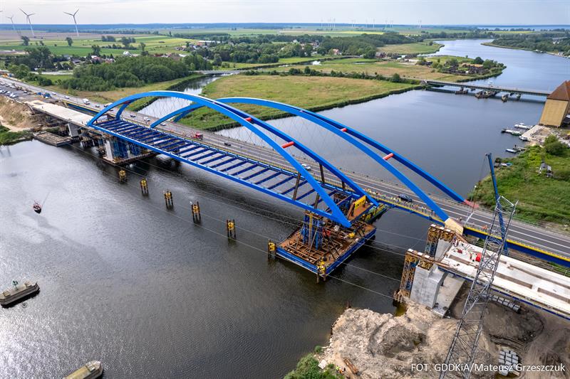 Konstrukcja nowego 1100-metrowego mostu łukowego w Wolinie, powstającego w ramach budowy drogi ekspresowej S3 Dargobądz – Troszyn, została w minioną sobotę (18 maja) nasunięta i już góruje nad cieśniną Dziwna.