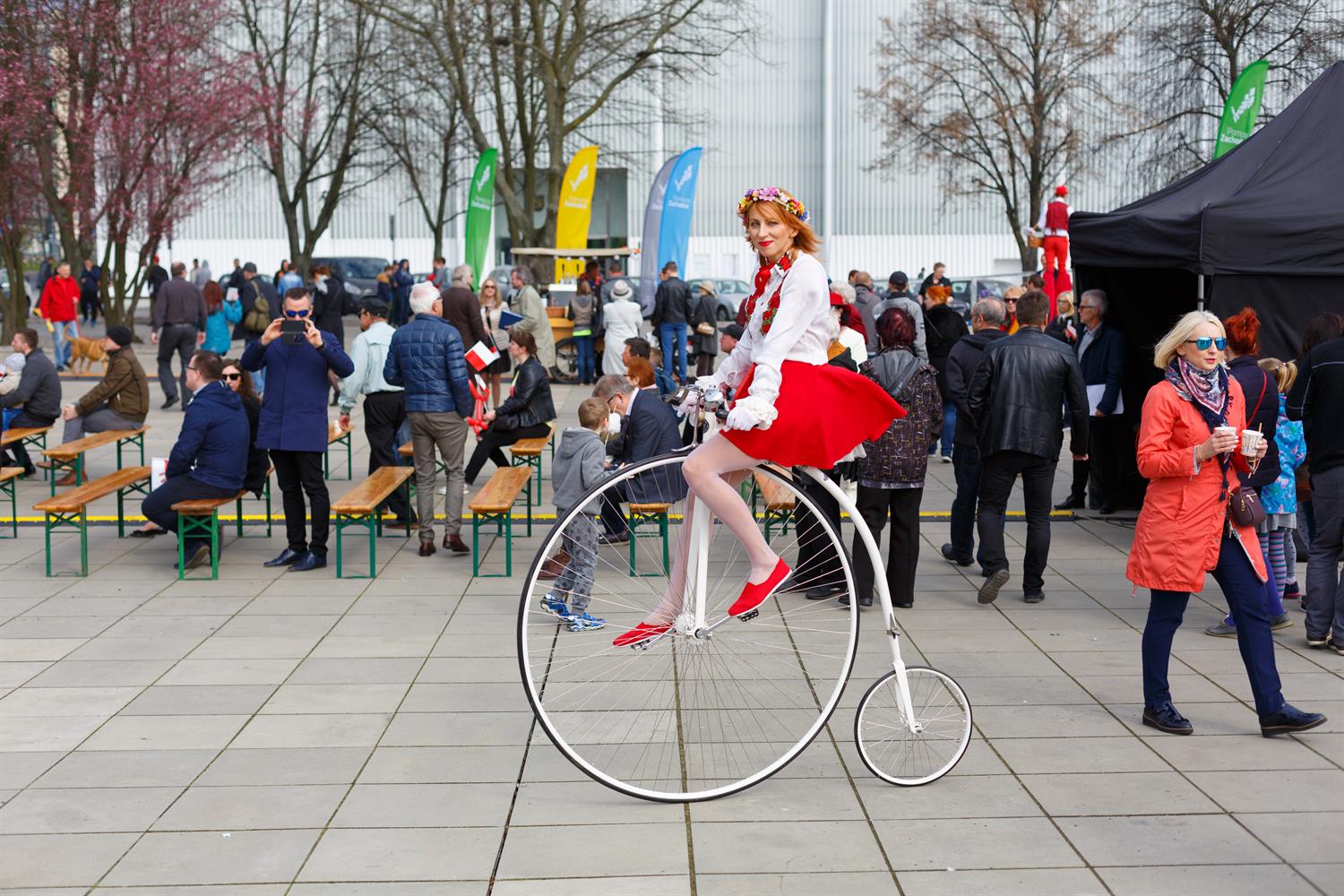 Na plac wjechała na bicyklu pani ubrana w barwy narodowe pani na bicyklu. są szczudlarze, którzy rozdają biało-czerwone flagi. W programie imprezy znalazło się także czytanie fragmentów konstytucji przez aktorów Teatru Polskiego w Szczecinie, koncerty, m.in. Olka Różanka i duetu Jackpot, oraz atrakcje dla najmłodszych obywateli - malowanie twarzy i robienie baniek mydlanych. Plac Solidarności można opuścić z własnym egzemplarzem konstytucji.
