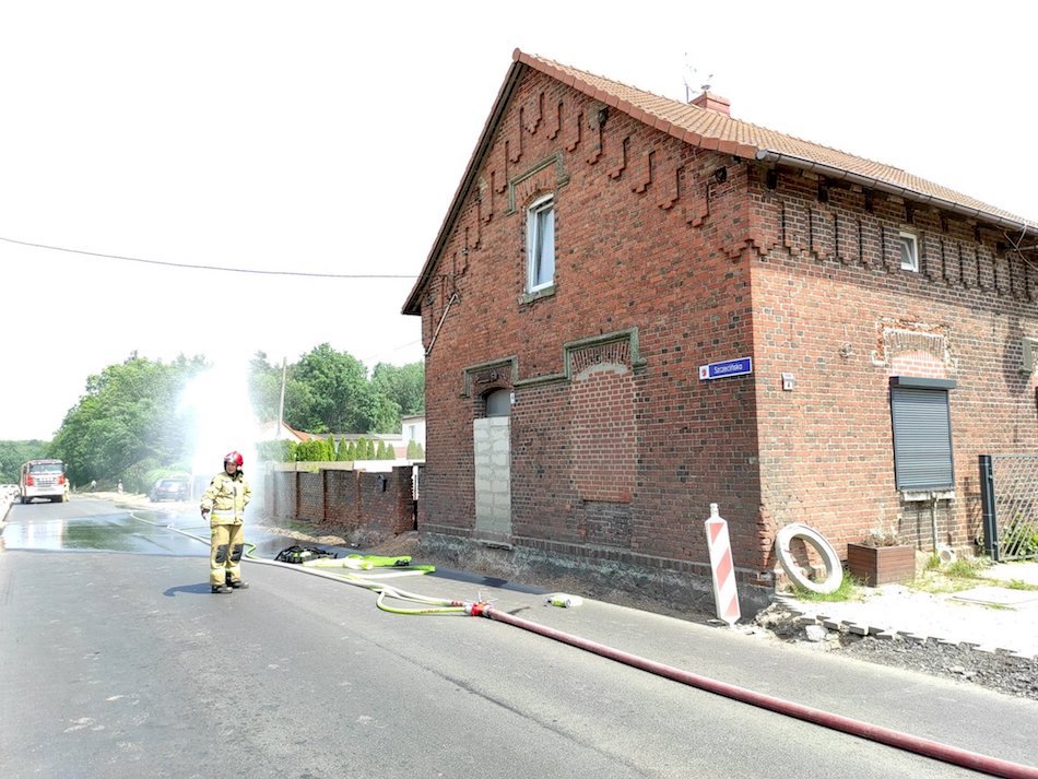 To nie przy pracach drogowych a przy wykopie dziury pod szambo na prywatnej posesji przy ul. Szczecińskiej uszkodzony został gazociąg w Przęsocinie.