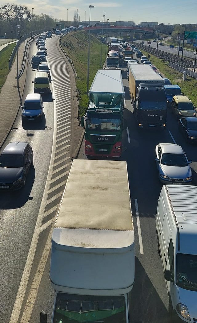 Potężny korek utworzył się w poniedziałek rano na trasie z prawobrzeża do centrum Szczecina.