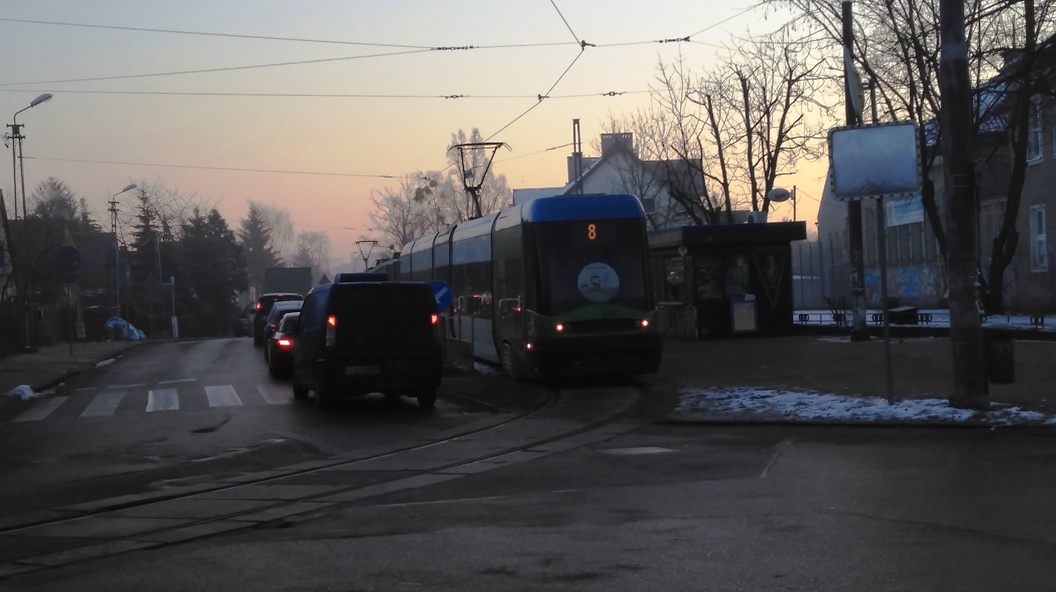 Spory zator utworzył się na ul. Okulickiego w Szczecinie. Ok. 7.30 tramwaj najechał tam na auto osobowe.