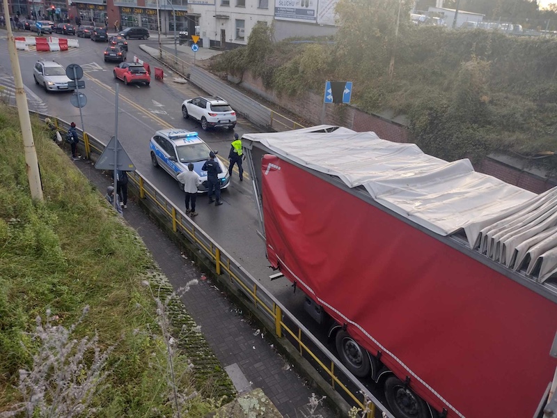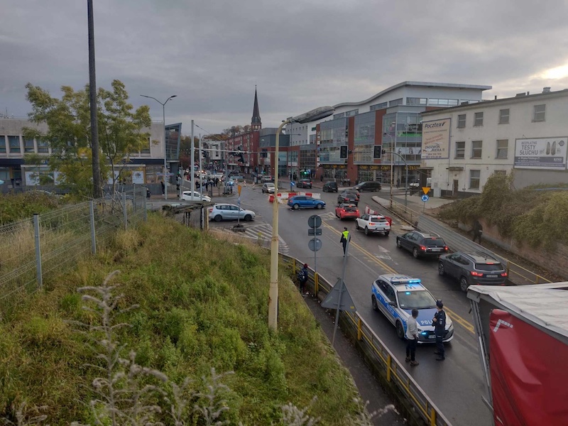 Kierowcy jadący od strony pl. Wolności, by przedostać się na drugą stronę ul. Szczecińskiej, mogą korzystać z objazdu przez ulicę Dworcową. Na miejsce zdarzenia wezwano służby, które pomagają w wyciąganiu ciężarówki spod wiaduktu i kierują ruchem.