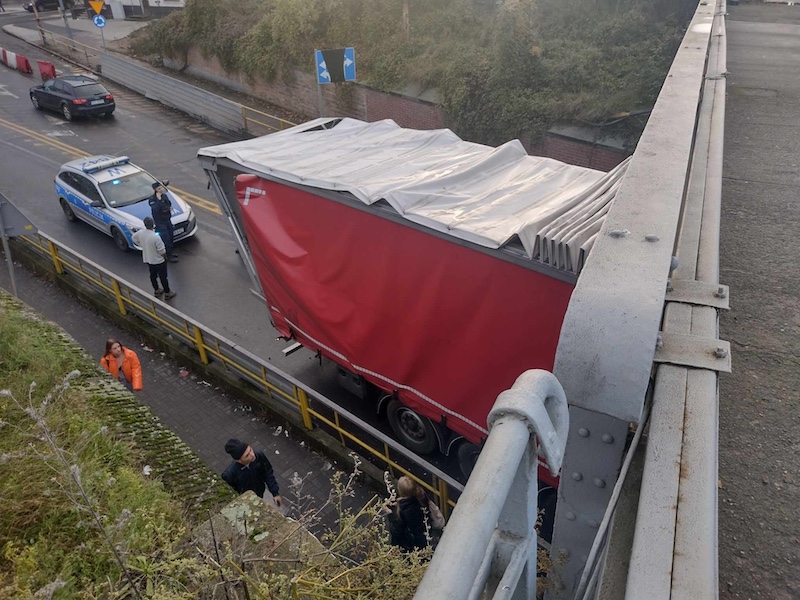 W poniedziałek ok. godziny 8 rano samochód ciężarowy jadący w kierunku ul. Szczecińskiej wjechał pod wiadukt kolejowy przy ul. Wyszyńskiego. I pod nim został.