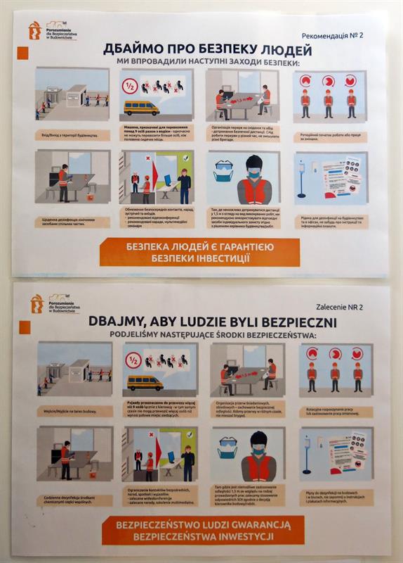 Na terenie budowy wietrzone są kontenery i sanitariaty oraz wprowadzono obowiązek codziennego czyszczenia ich detergentami. Inaczej wyglądają również narady, które są przeprowadzane w formie wideokonferencji lub na świeżym powietrzu. Ograniczony dostęp na teren budowy mają osoby z zewnątrz, np. kurierzy. Skrzynie na korespondencję zostały ustawione w biurze ochrony. Po zakończeniu pracy pracownicy mają obowiązek posprzątania pomieszczeń, tak aby umożliwić ich umycie.