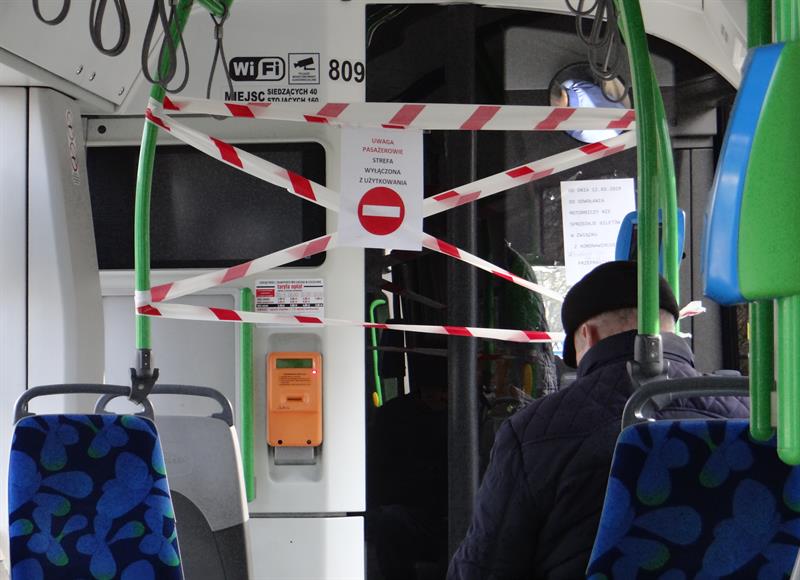 Warto pamiętać o już wprowadzonych środkach ostrożności dla bezpieczeństwa tak kierujących, jak i podróżujących miejskim transporcie zbiorowym. Tą najbardziej widoczną zmianą aż do odwołania jest choćby wprowadzenie stref buforowych, co polega na wyłączeniu z użytku przednich części z siedzeniami dla pasażerów i drzwi najbliżej kabin kierowców i motorniczych. To dotyczy głównie miejskich autobusów, gdzie kierujący nie jest całkowicie odizolowany. Zostały one odgraniczone taśmami ze stosownymi komunikatami.