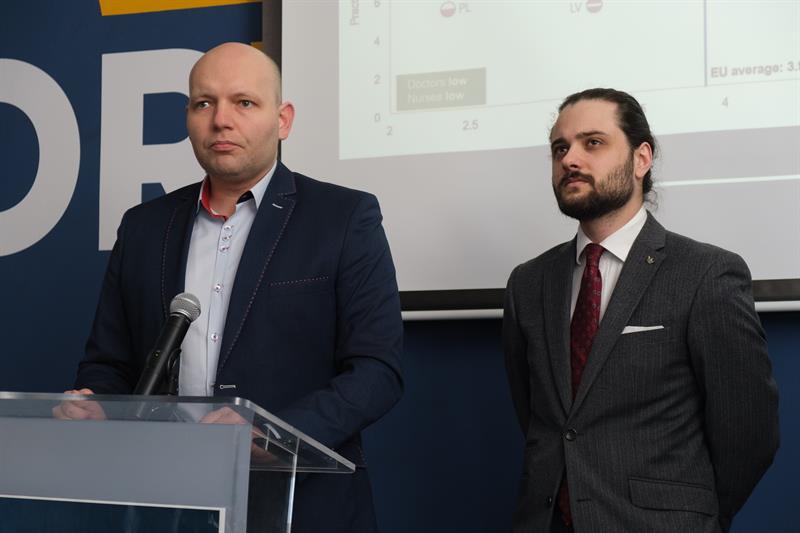 - Rząd nakazuje osobom po 60. roku życia obowiązkową wizytę w przechodni rejonowej - mówił lekarz Tomasz Kruszewski, również związany z ugrupowaniem Korwin. - Każe im wsiąść do zatłoczonych tramwajów, do zatłoczonych autobusów. Co więcej, ten obowiązek spoczywa na mnie. A nie ma określonych środków, jakie mam podjąć, żeby zmusić tego człowieka do przyjścia do przychodni. Czy mam wzywać policję? Mam zatrudnić ruską mafię, która będzie kijami zaganiał do przychodni? Jeżeli pacjent ma ustalone rozpoznanie, ma ustalone postępowanie, jest w stanie stabilnym, to nie wymaga żadnego postępowania medycznego.