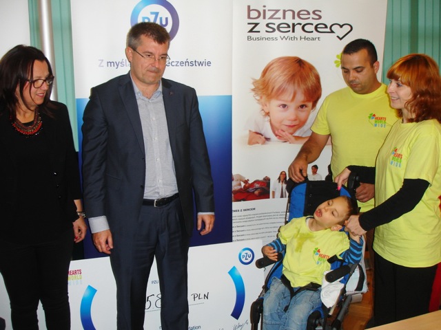 Joanna Łysiak, prezes Fundacji Hearts WorldWide, i dyrektor Oddziału Regionalnego PZU Arkadiusz Szopieraj przekazali dary serca dla 6-letniego Kubusia Ogara oraz jego rodziców: Bożeny i Filipa. Zakup sprzętu umożliwi beneficjentom ćwiczenia także w domu.