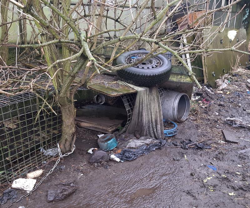 Na posesji nie było widać misek z wodą ani jedzeniem. Tylko trzy psy na łańcuchach, wegetujące wśród siatek, desek, opon i innych odpadów.