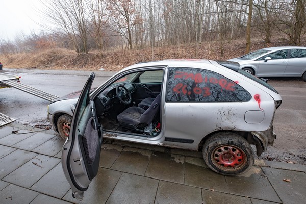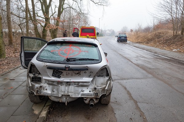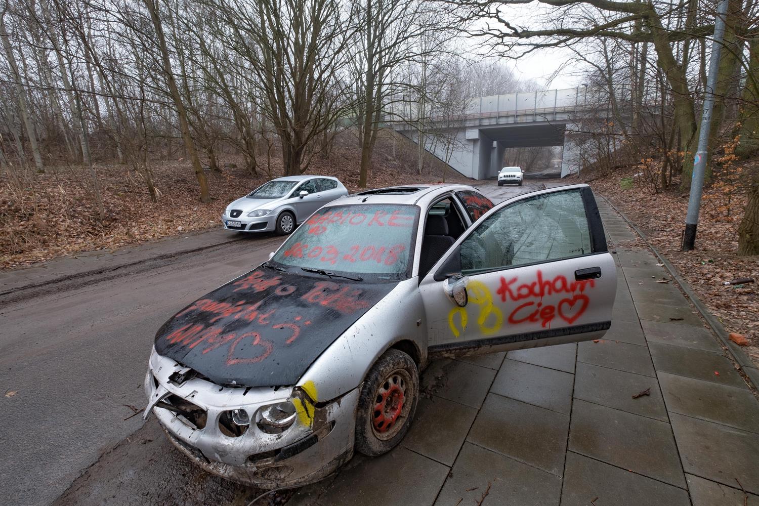 Wczoraj nie bylo tam żadnego wraku. W zeszłym roku ktoś wysypał tam cześci samochodowe z autoszrotu. Lampy, lusterka, szyby, opony zderzaki. Wszystko opisane markerem. Marka model i rocznik. W okolicy Klinisk Wielkich w lesie znajdziemy cale worki ze śmieciami. To głębszy problem. Zaleciałosci.