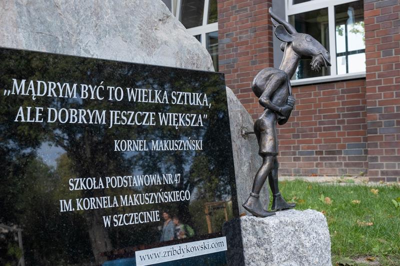 Kto wita uczniów Szkoły Podstawowej nr 47 przy ul. Jagiellońskiej w Szczecinie? Koziołek Matołek – postać z bajki Kornela Makuszyńskiego! Rzeźba i tablica pamiątkowa są prezentem dla szkoły od generalnego wykonawcy inwestycji, której po pół wieku doczekała się placówka. Dzieci od nowego roku szkolnego mogą korzystać tu z nowoczesnego boiska z siłownią, placem zabaw, ławeczkami do odpoczynku na przerwach.