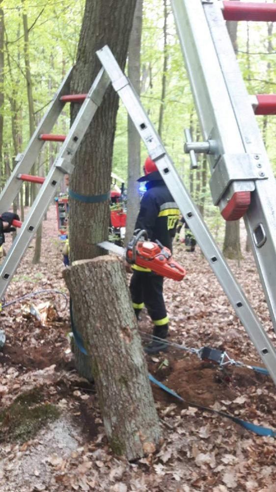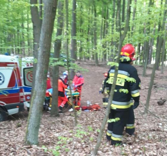 Akcja ratownicza nie była łatwa, bo pojazdom ratowniczym trudno było wjechać do lasu. Ostatecznie poszkodowany został ewakuowany za pośrednictwem śmigłowca Lotniczego Pogotowia Ratunkowego.