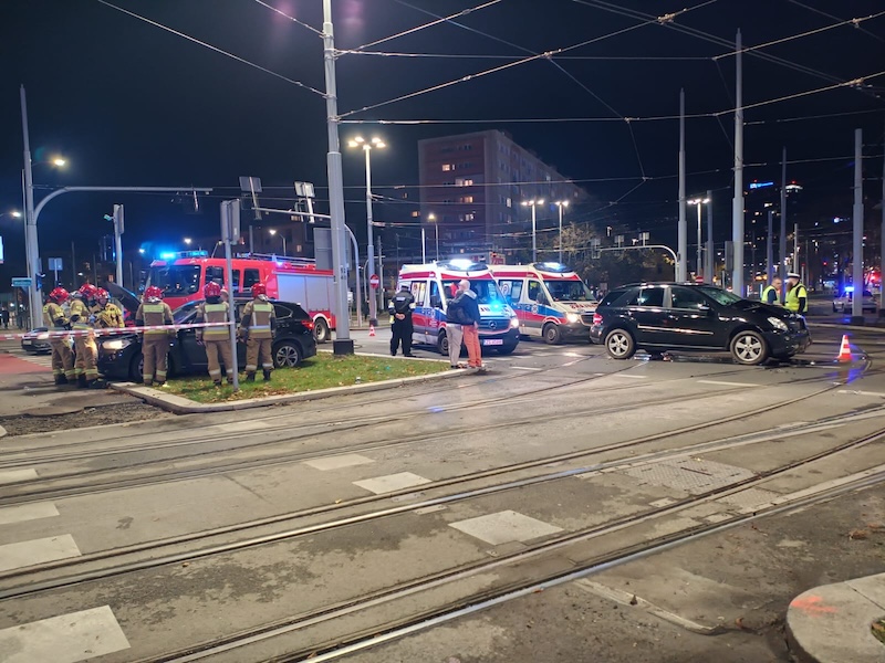 Dwa samochody osobowe marki Mercedes i BMW zderzyły się na placu Rodła w Szczecinie. Ruch drogowy odbywa się bez większych utrudnień, choć zablokowany przez służby jest jeden pas jezdni - w kierunku ul. Jana Matejki.