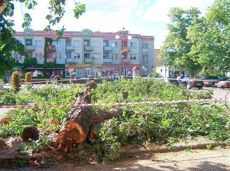 Samochody zostały uszkodzone, ale szczęśliwie nic nikomu się nie stało. Kilka dni temu w tym miejscu bawiło się w Barlinku kilkaset dzieci i dorosłych z okazji Dnia Dziecka. Do niedawna zlokalizowana była tam scena, która w razie opadów deszczu czy burzy służyła za schronienie wielu osobom. Niewiele brakowało, by doszło do prawdziwej tragedii.