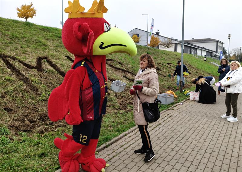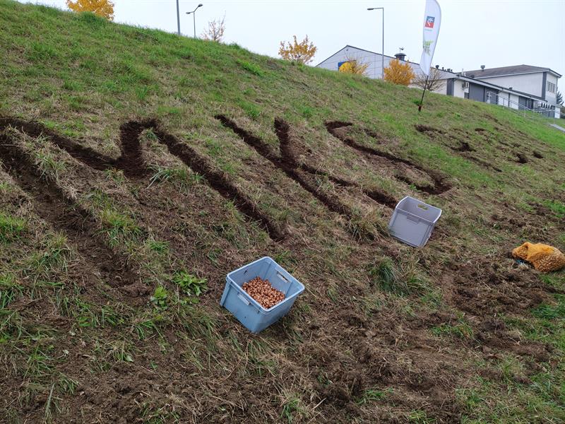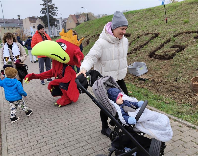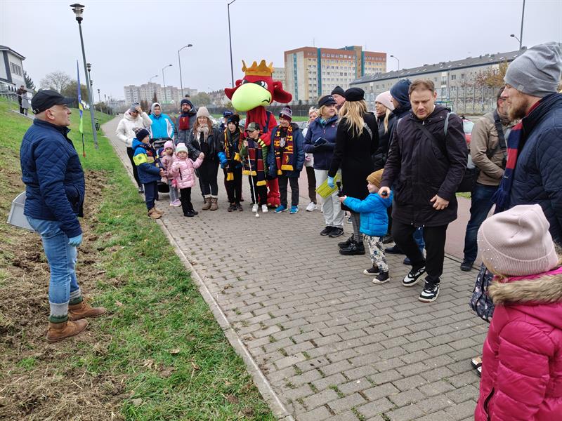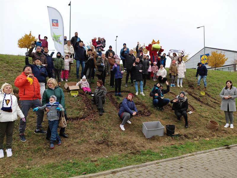 „Krokusowa rewolucja" na finał swojego sezonu 2024 obrała uhonorowanie Dumy Pomorza - dywanem z 11 tysięcy krokusów posadzonych w napis: MKS POGOŃ. Tego dzieła - w rozkwicie - warto wypatrywać wiosną, a na skarpie u zbiegu ul. Przyjaciół Żołnierza oraz Krasińskiego. Fot. Arleta NALEWAJKO