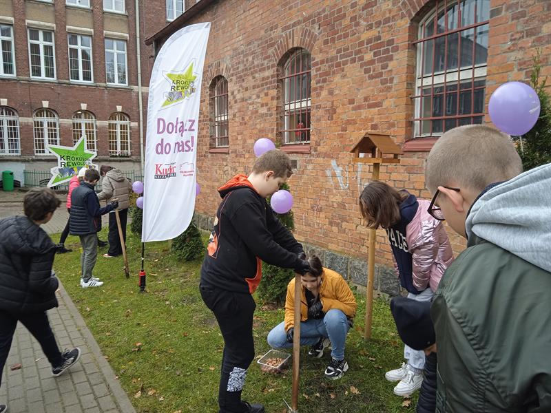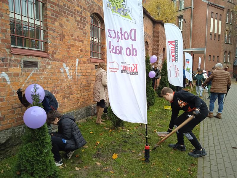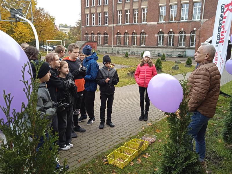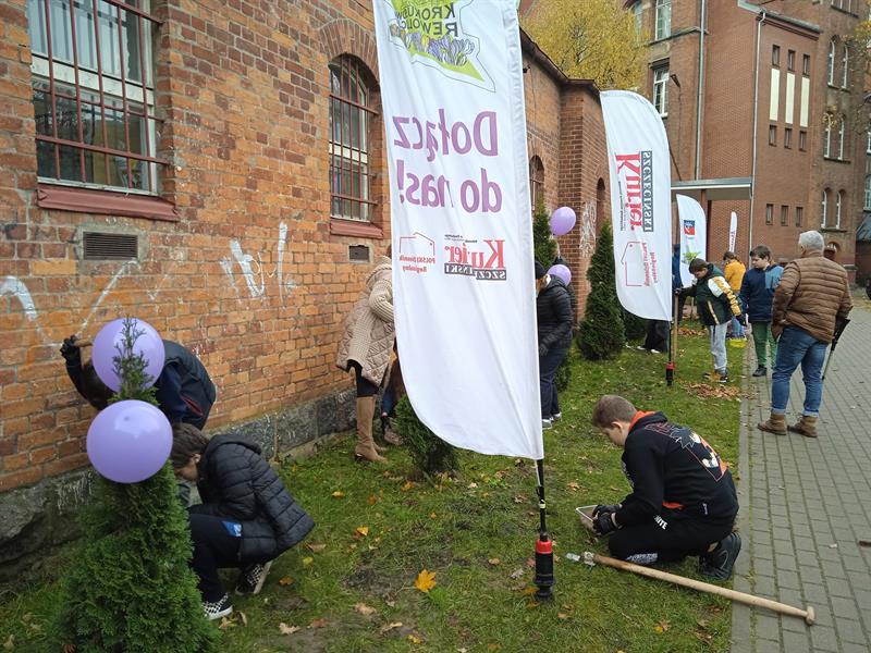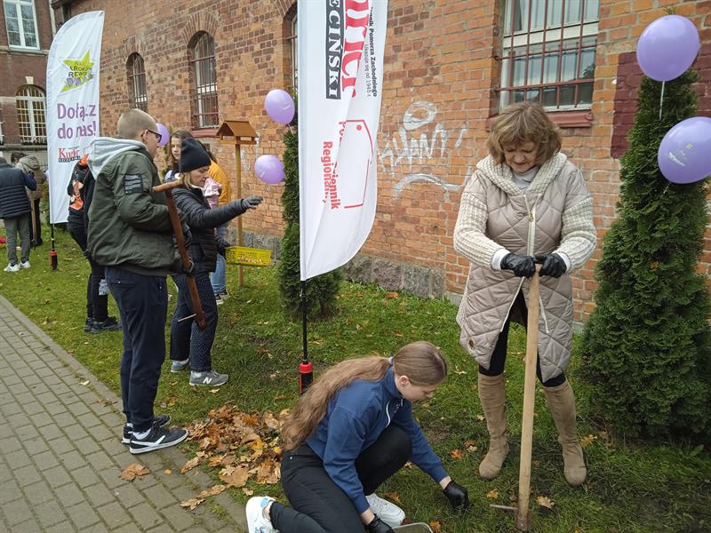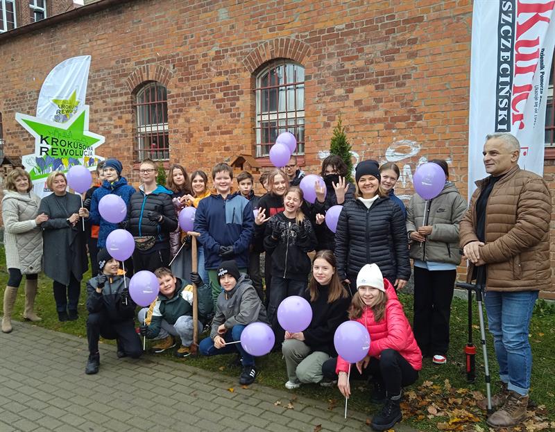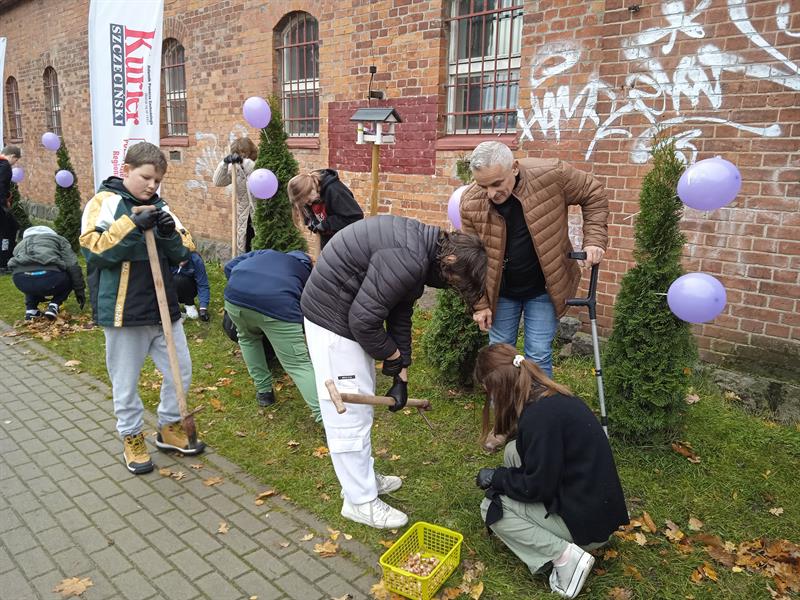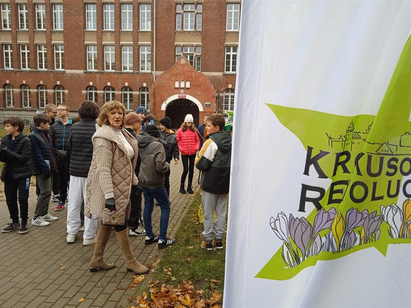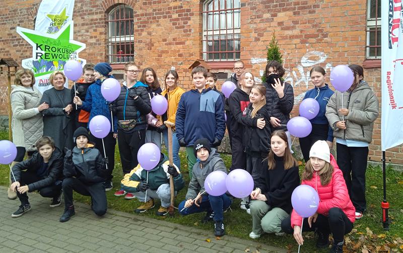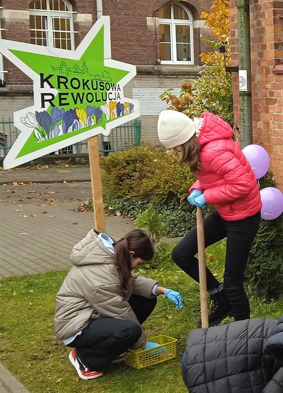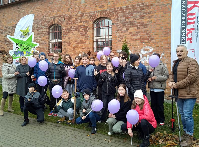 Jednak w piątek (3 listopada) zaprosili organizatorów „Krokusowej rewolucji" - radną Marię Myśliwiec, Sylwiusza Mołodeckiego z „Zielonych Ogrodów" oraz naszą redakcję - do wspólnego z uczniami zaaranżowania kwiatowego kobierca opodal szkolnego boiska.