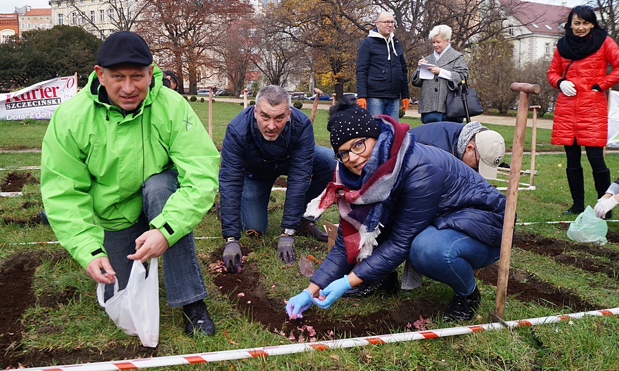 - To jeden z pierwszych placów miejskich, na jakie trafiają przyjezdni. Niech więc widzą, że mieszkańcy kochają swój Szczecin – komentował Waldemar Kulpa, prezes „Szczecina dla Pokoleń”. – W „krokusowej rewolucji” kontynuujemy misję. Rok temu sadziliśmy kwiaty na pl. Szarych Szeregów. Z efektem, który – jak słyszę - zyskał uznanie mieszkańców. Teraz krokusy wprowadzamy na teren zielony opodal odnowionych zabytkowych budynków użyteczności publicznej, starych kamienic i… mego miejsca pracy. Tym bardziej się cieszę!