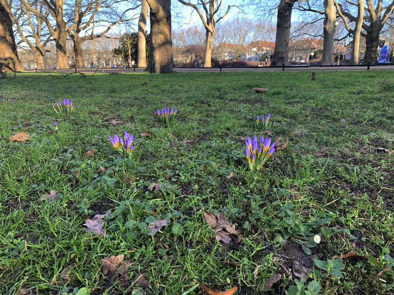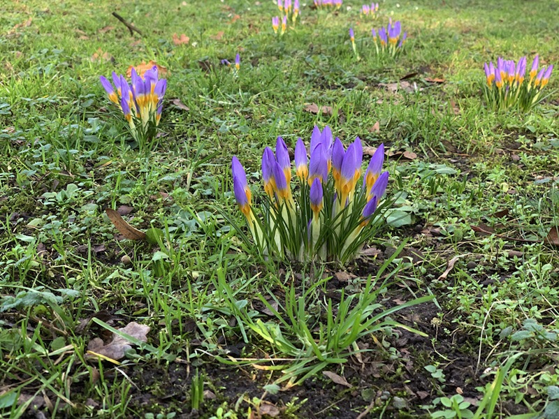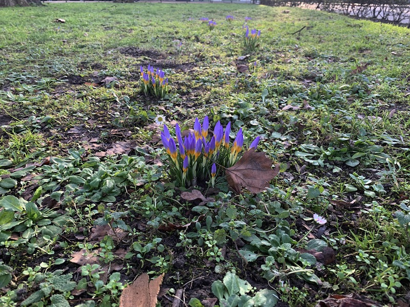 Utrzymująca się od kilku dni wiosenna aura spowodowała, że na Jasnych Błoniach w Szczecinie zakwitły pierwsze krokusy.