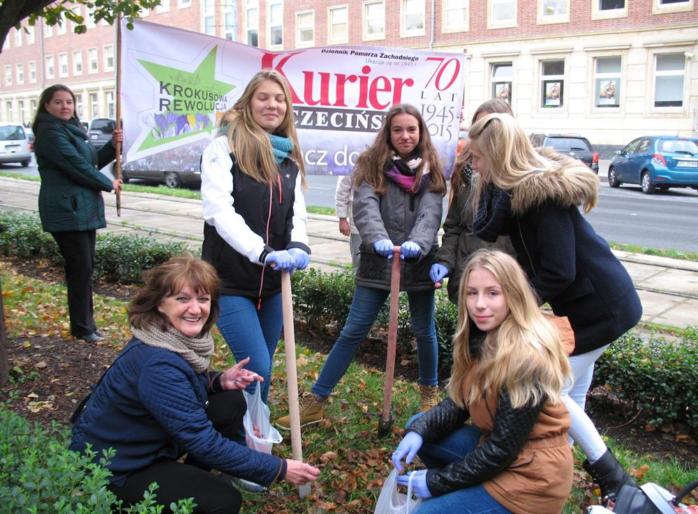 Młodzież sadziła krokusy sponsorowane przez zarządcę nieruchomości: Dom-Best. Firma zyskuje markę społecznie zaangażowanej, choćby w „krokusowej rewolucji" uczestnicząc po raz trzeci. Dzięki niej mamy w Szczecinie kwiatowe pola m.in. przy ul. Komuny Paryskiej i Zdrojowej.
