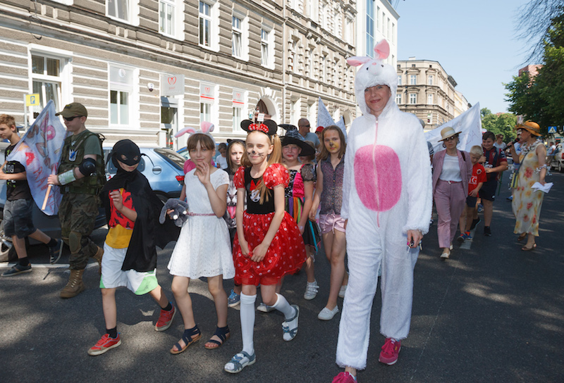 Pochód ulicami miasta otwierał tytułowy bohater imprezy - Król Maciuś I znany z powieści Janusza Korczaka i jej filmowych ekranizacji. Za nim podążał pochód kolorowych postaci.