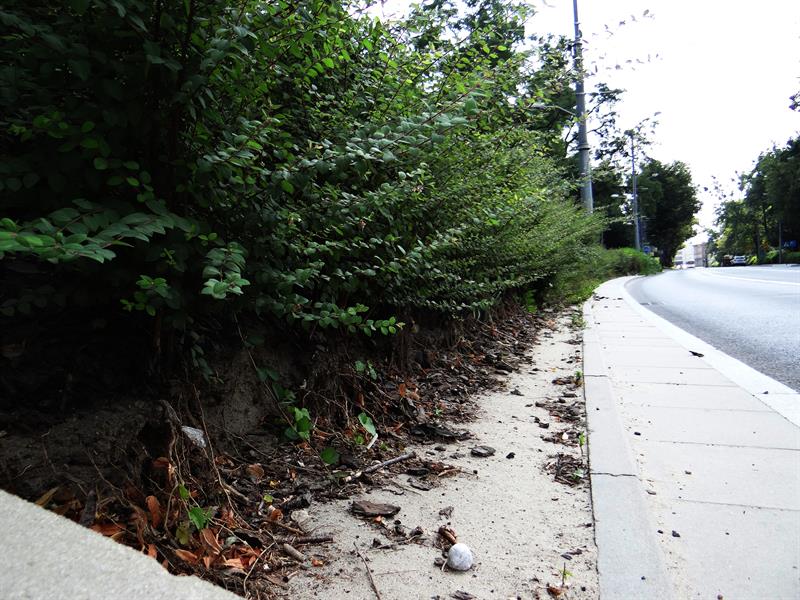 Jeżeli skarpa na tym odcinku ul. Arkońskiej wkrótce nie zostanie wzmocniona, to z następnym deszczem spłyną na jezdnię również krzewy. Podobnie jak - niestety - słynne maty rozchodników na skarpach przebudowywanej ul. Szafera. ©℗