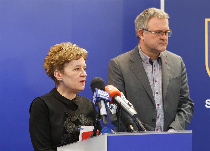 O konsekwencjach masowych zwolnień lekarskich w szczecińskiej oświacie na konferencji poinformowała Lidia Rogaś, dyrektorka Wydziału Oświaty UM i wiceprezydent Szczecina Krzysztof Soska. Fot. Ryszard Pakieser