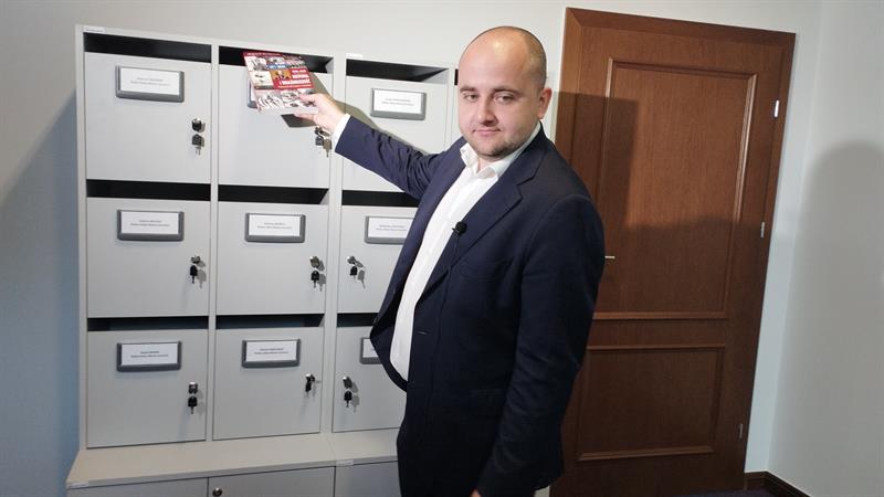 Dariusz Matecki egzemplarz podręcznika „Historia i Teraźniejszość" wrzucił do skrzynki radnego Pawła Bartnika. Fot. Agnieszka Spirydowicz