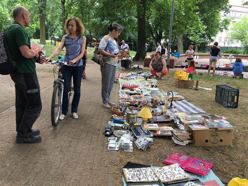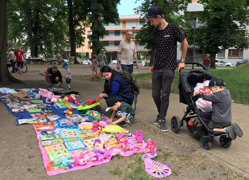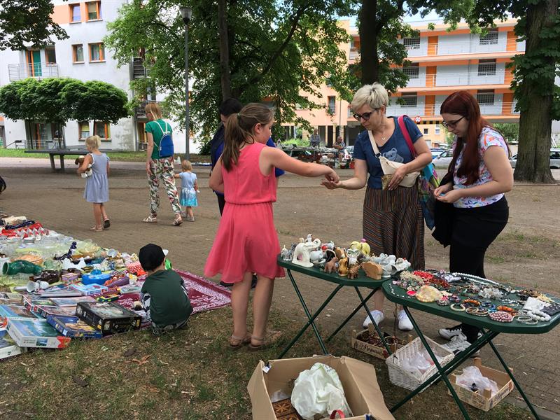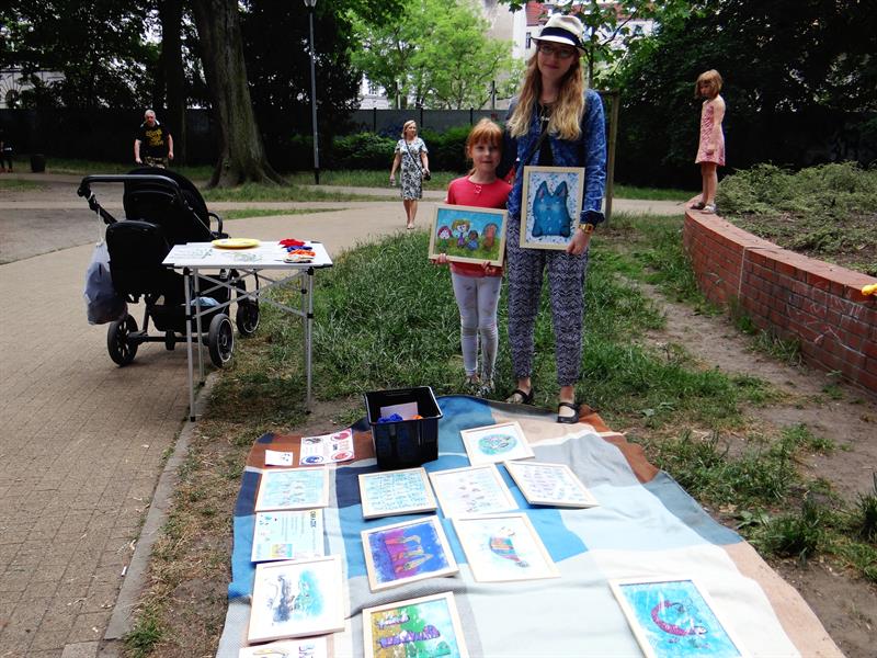 Uwagę przyciągały "Bajkolorki" - fantastyczne obrazki najmłodszych, artystycznie zaaranżowane przez Barbarę Piskorską. Podobnie jak stoisko klimatycznego miejskiego rękodzieła, czyli cuda z tkaniny i włóczki spod ręki „Aktywnej Mamy". Sporym zainteresowaniem cieszył się również pchli targ, podczas którego każdy mógł zdobyć dla siebie skarb z drugiej ręki po okazyjnej cenie. Choćby bransoletki i zabawki od 1 zł za sztukę.