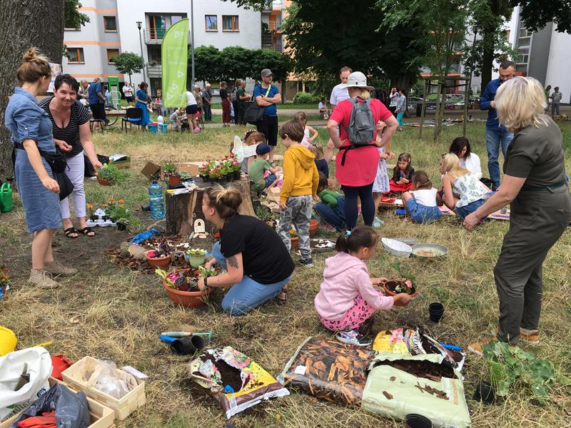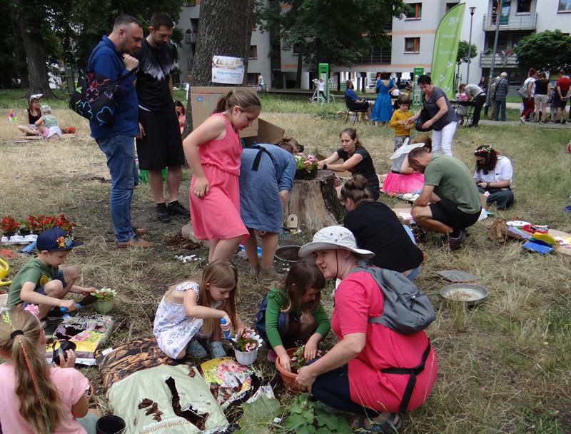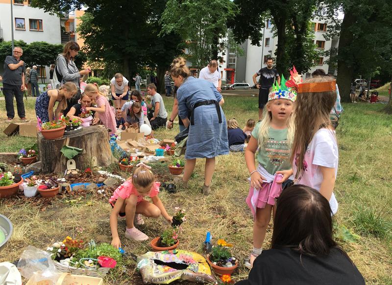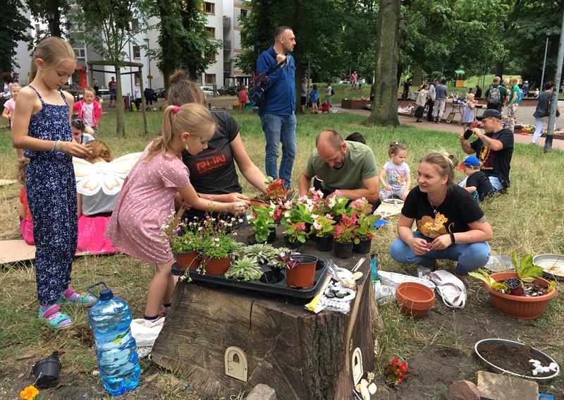 - Mamy działkę i uwielbiamy na niej spędzać czas. Zabawy w ziemi, czyli sadzenie oraz pielęgnowanie kwiatów i warzyw, sprawia nam wiele satysfakcji. Tutaj natomiast… dajemy upust fantazji - mówiła pani Hanna, gdy Julia między zielone rozchodniki, białe kamyki i czerwone begonie usadzała różowego misia. - Tęskniliśmy takimi imprezami: pełnymi życia i pozytywnej energii. Przed pandemią braliśmy udział we wszystkich wydarzeniach, jakie odbywały się w parku Nadratowskiego. Ta jest o tyle ciekawsza, że oferuje mnóstwo gier, zabaw i warsztatów dla najmłodszych. Dzieciaki są w swoim żywiole. Bawią się świetnie. Oby więcej takich.