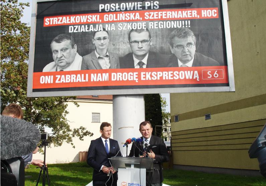 – Na razie jest jeden baner, ale tematów do wytykania w ten sposób błędów PiS-u nam nie brakuje – powiedział poseł Stanisław Gawłowski. On, wicemarszałek Tomasz Sobieraj i członkowie Platformy Obywatelskiej wydali 2 tys. zł na akcję billboardową na rzecz kompleksowej budowy S6.