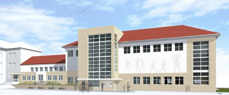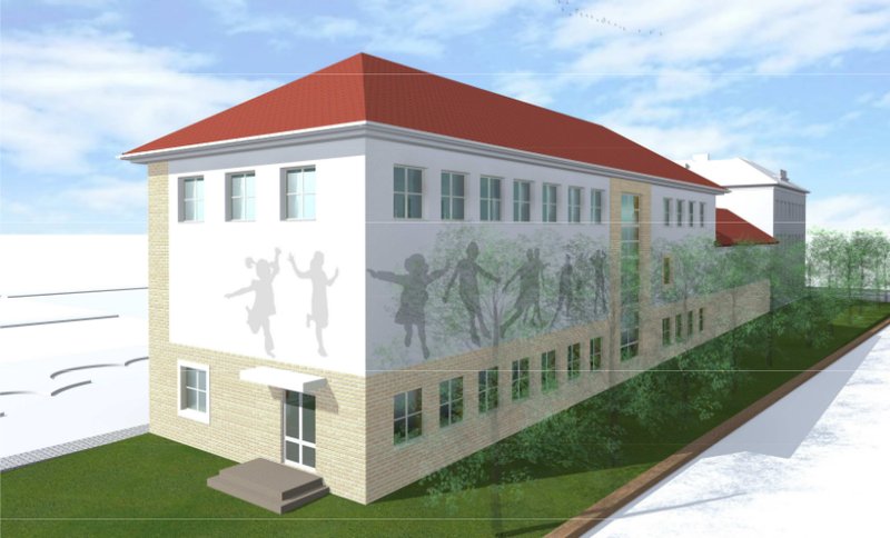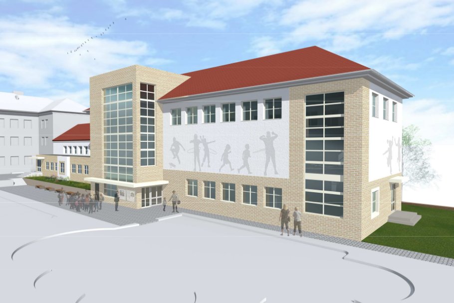 Etap pierwszy obejmować będzie wybudowanie nowego obiektu budynku hali sportowej wraz z czterema dodatkowymi salami lekcyjnymi i świetlicą, zapleczem sanitarnym. Wykonane zostanę przyłącza do mediów (instalacje wodociągowe i elektryczne, kanalizacja deszczowa i sanitarna). Nowy obiekt wyposażony będzie w windę oraz dostosowany do osób niepełnosprawnych.