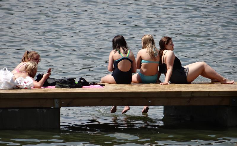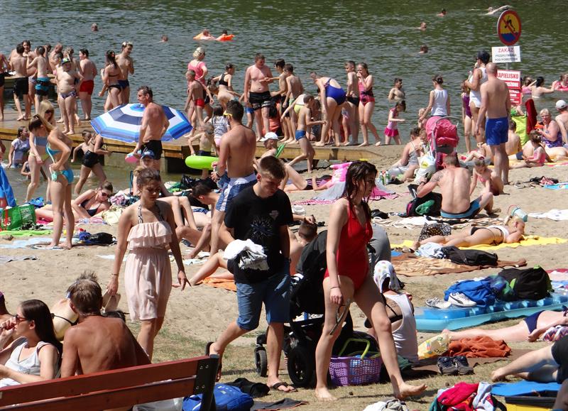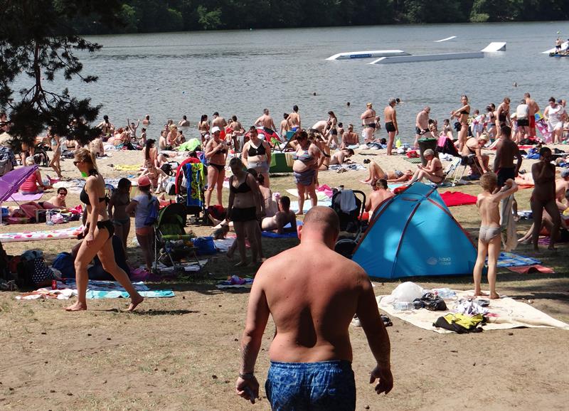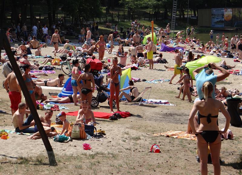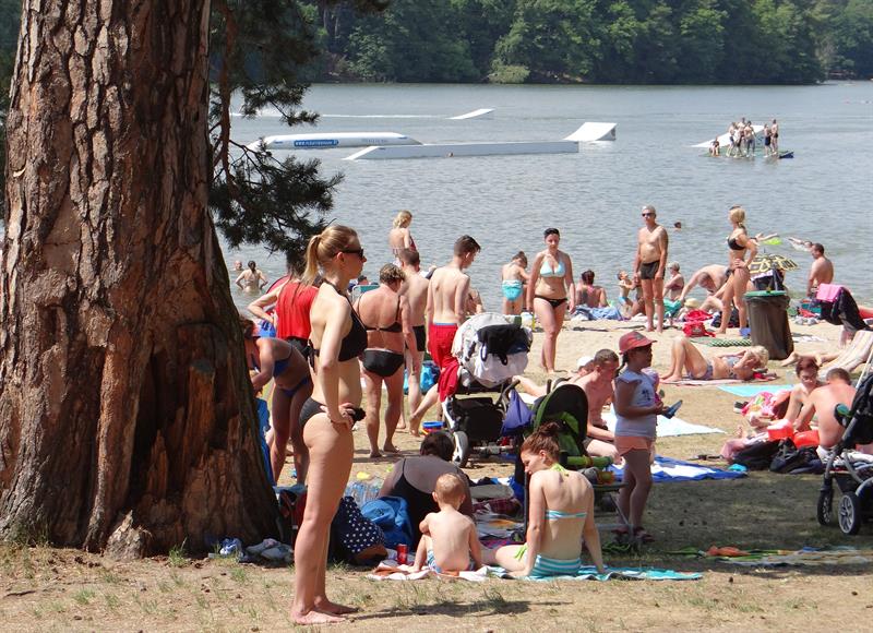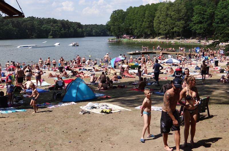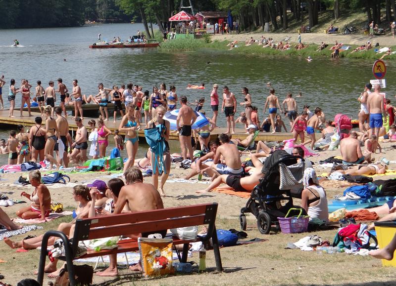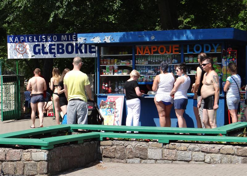 Upał sprawił, że cały pas do plażowania i zieleńce kąpieliska zapełniły się wypoczywającymi. Nie brak chętnych do kąpieli i sportów wodnych. Prawdziwe oblężenie przeżywają pobliskie punkty małej gastronomii. Amatorzy lodów i napojów chłodzących ustawiali się karnie w ogonkach przy kioskach.