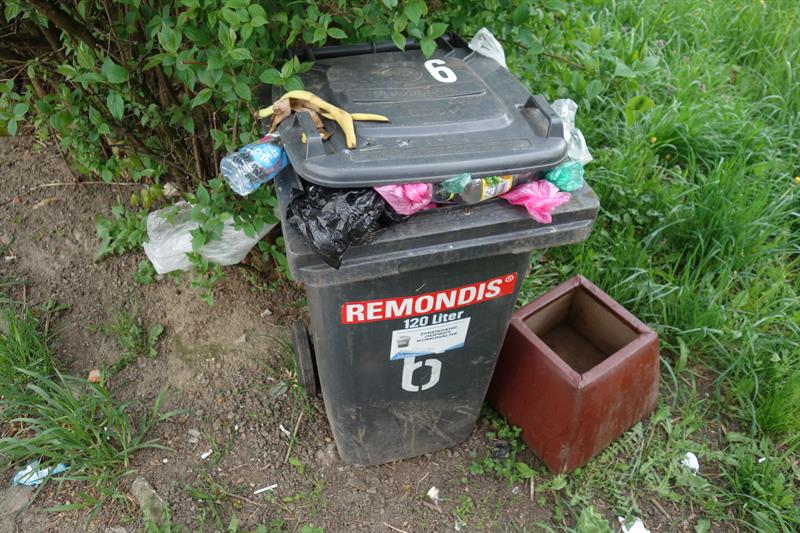 Tymczasem jeden z kubłów znajduje się od dłuższego czasu w krzakach przy budynku. Wewnątrz sterta od dawna nie opróżnianych odpadków, a wokół bałagan. Jeśli gospodarzowi budynku „zginął” kubeł, to nie trzeba go daleko szukać. Jest i czeka na opróżnienie. ©℗
