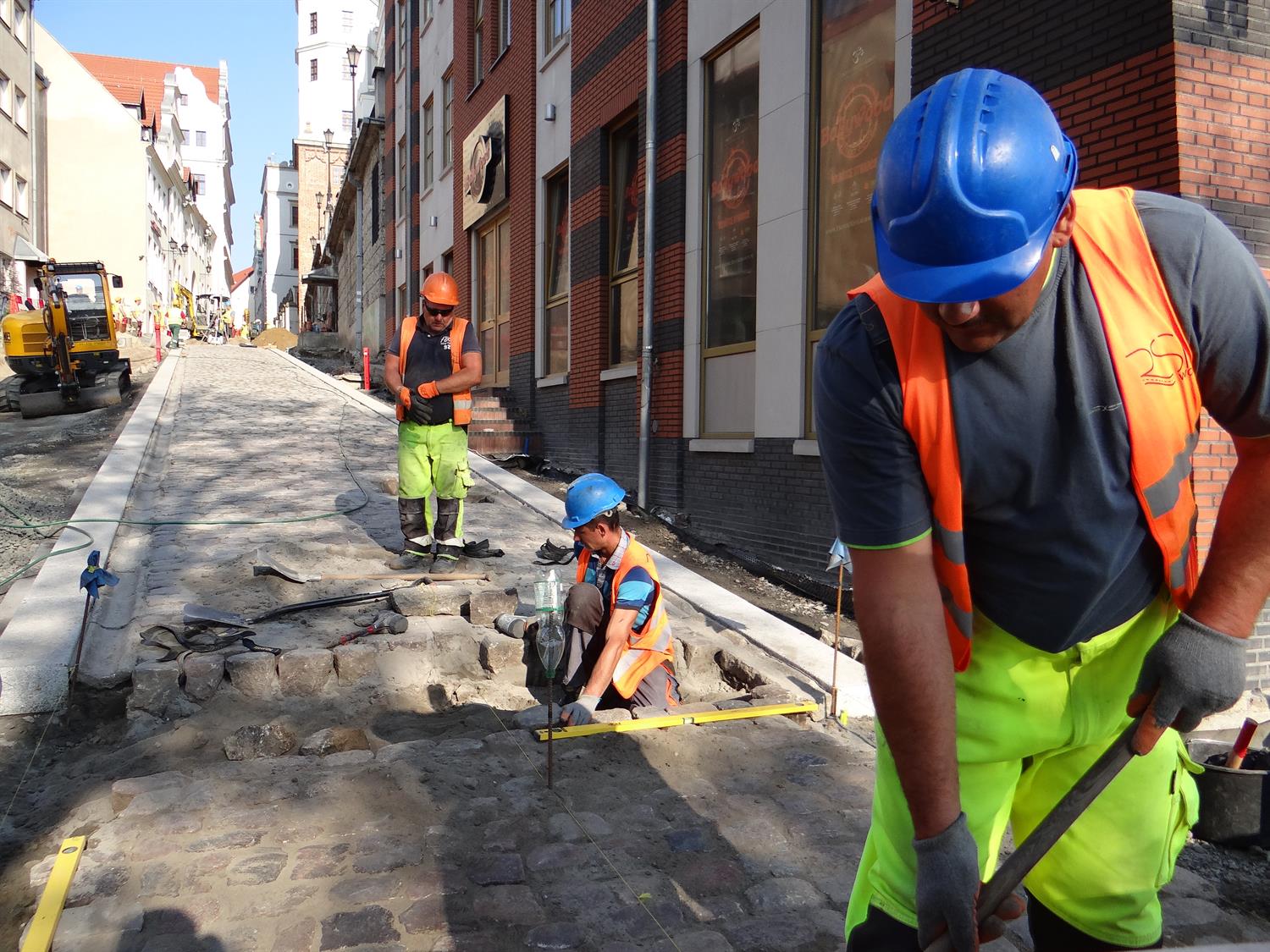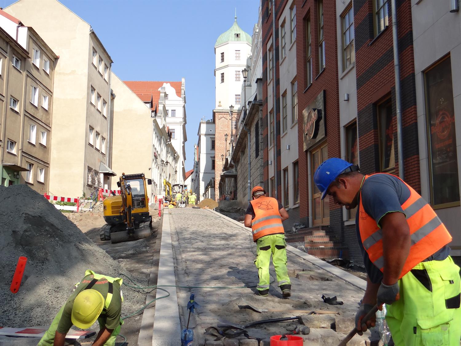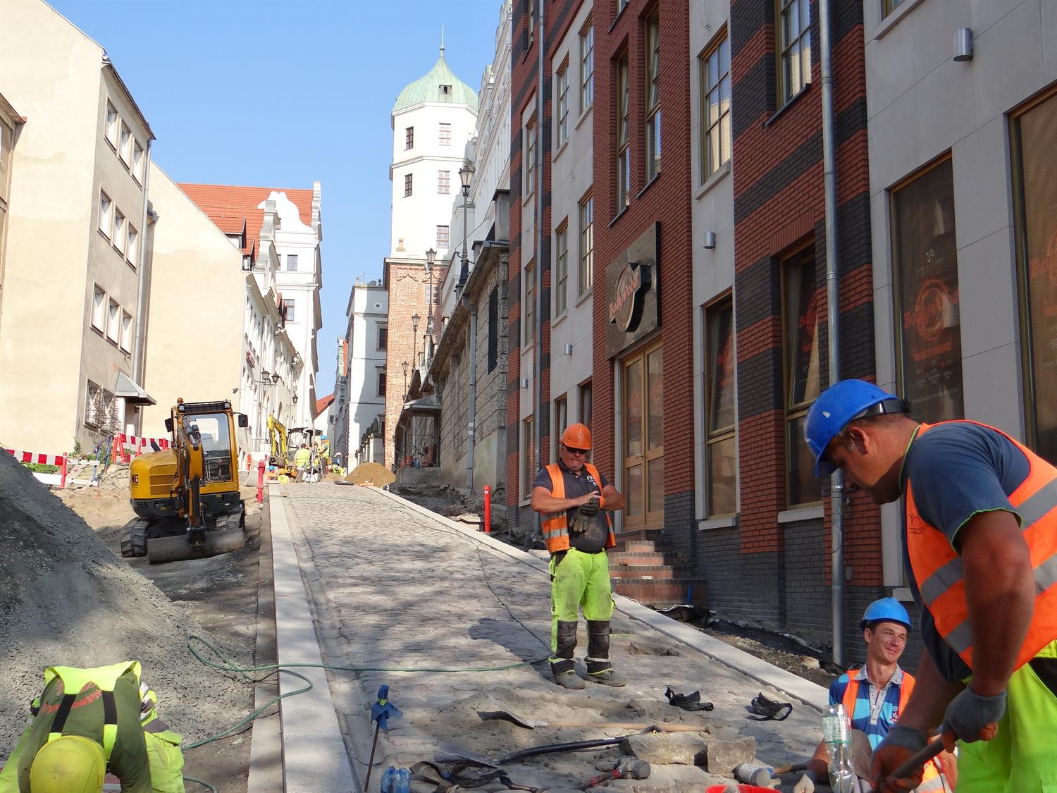 Dawno wypatrywany i wielokrotnie anonsowany zresztą remont ulicy Kuśnierskiej rozpoczął się wreszcie tego lata. Na plac budowy drogowcy ze spółki Budimex, bo to jej ZDiTM go zlecił, weszli od 1 sierpnia. Zadanie obejmuje przebudowę brukowanej jezdni i zdegradowanych chodników, zagospodarowanie przyległych do niej terenów zielonych oraz montaż elementów małej architektury.
