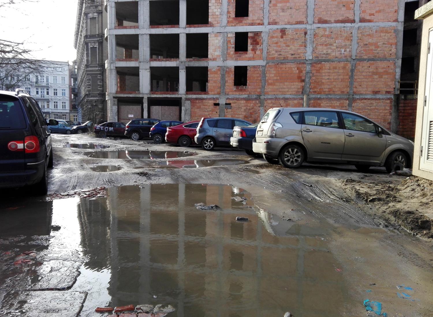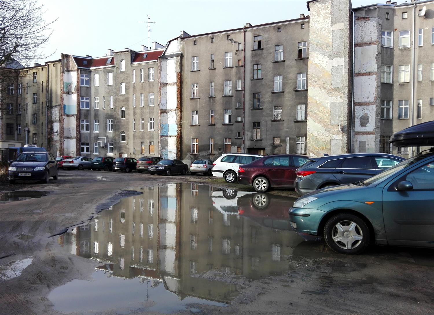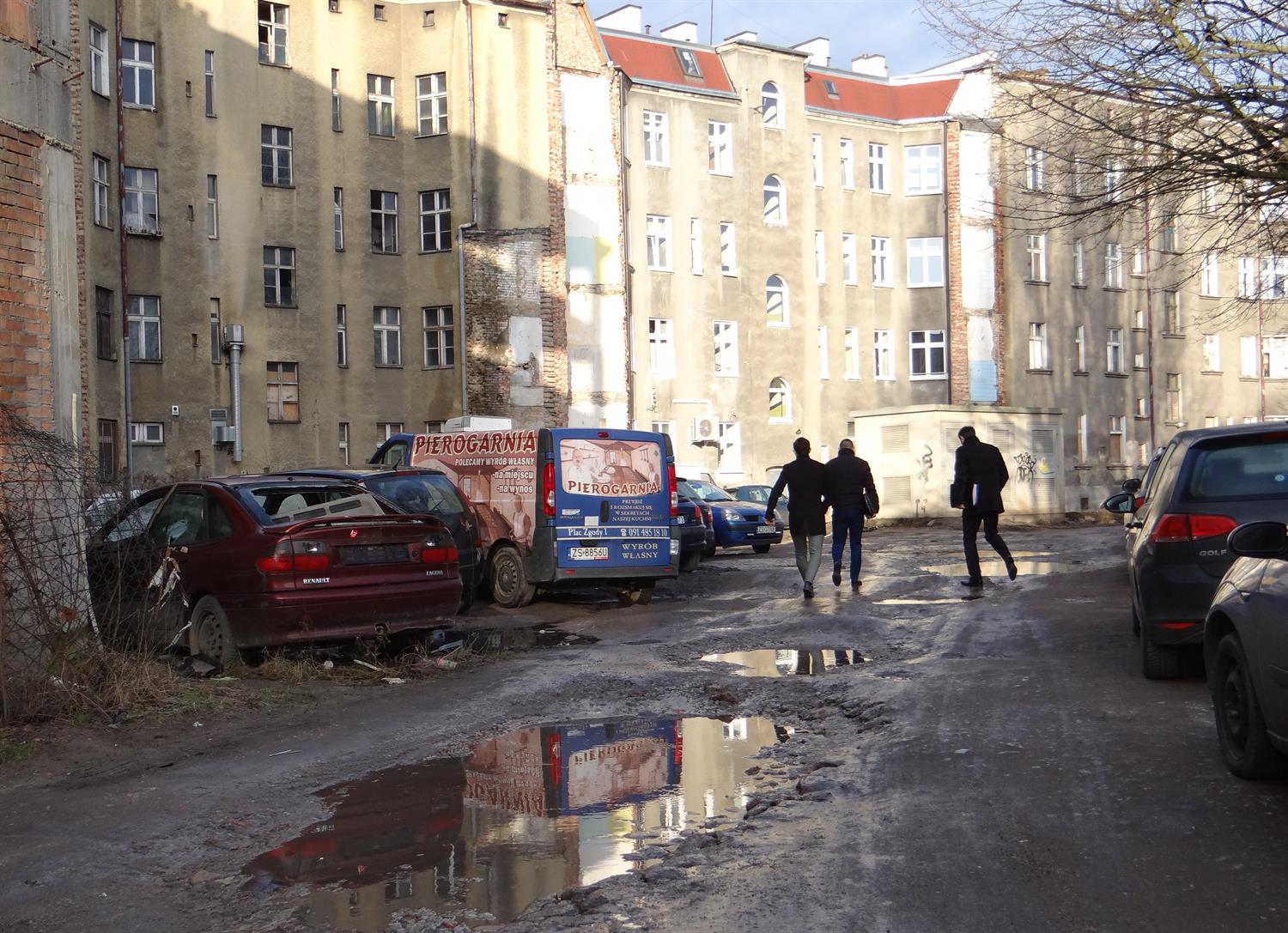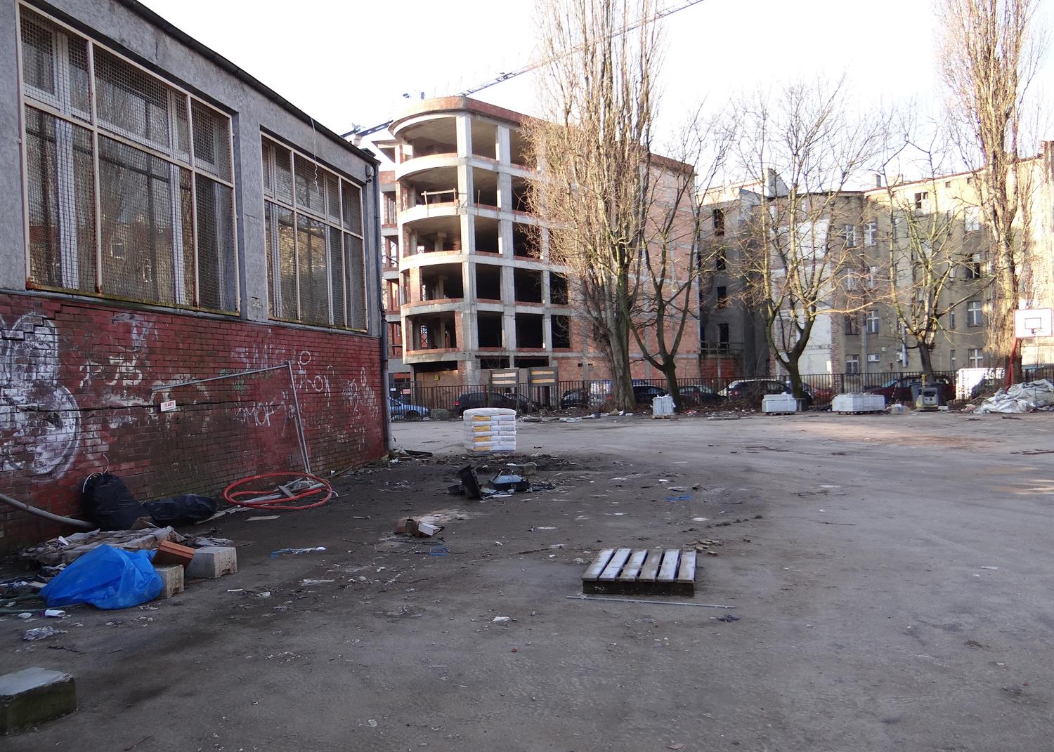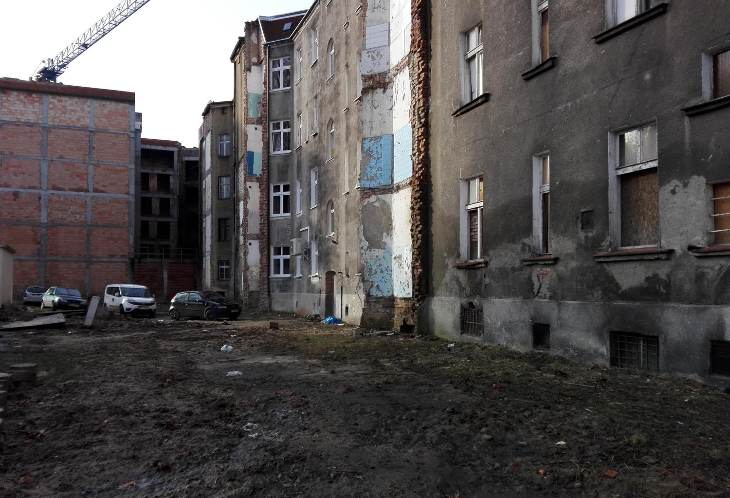 Przypomnijmy, że nieudolne dotąd próby zagospodarowywania i urządzania na nowo tego obszaru śródmiejskiej zabudowy w wykonaniu władz miasta i podległych mu podmiotów trwają już trzecią dekadę. I ich końca nie widać. Tylko w tym rejonie wysiedlone, nieużytkowane od wielu lat są kamienice o adresach: Śląska 43, Jagiellońska 94, 92 i 91. Do tego kilka wciąż zapyziałych i opustoszałych XIX- wiecznych kamienic przy ul. Księcia Bogusława X. Tylko kamienicę przy ul. Jagiellońskiej 93 jeszcze za czasów zlikwidowanej spółki komunalnej SCR udało się dotąd odremontować. Powyżej parteru niemal w całości pustostanami w stanie kompletnie zdegradowanym pozostają od lat także kamienice przy ul. Edmunda Bałuki ( d. Obrońców Stalingradu) 16 i 17. Obok nich rozpościera się opłakany widok na otoczenie i budynki zlikwidowanej szkoły (dawny "Maciuś") z przyległym doń boiskiem. To ostatnie służyło jeszcze do niedawna spółce LCD za zaplecze budowy, dziś walają się po nim resztki starych cegieł z rozbiórek w kamienicach i oficynach przyległych doń od strony ul. Śląskiej i materiałów budowlanych.