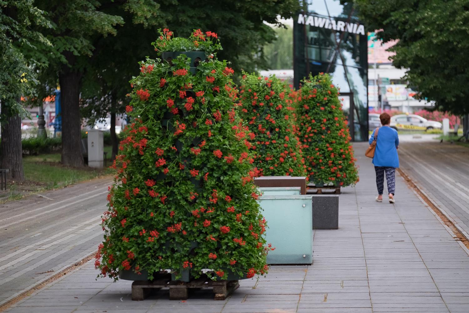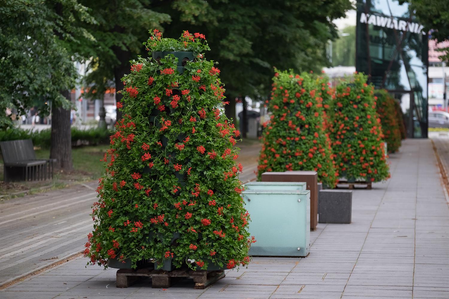 Miało ich być 15 - dwumetrowych kwiatowych wież - jak zapowiadał szczeciński magistrat. Ale nawet tych 10, jakie w środę (15 czerwca) pojawiło się w dawnej alei kwiatowej, już robi różnicę. Wyraźnie na plus, o ile znikną spod nich obskurne podstawki z europalet.