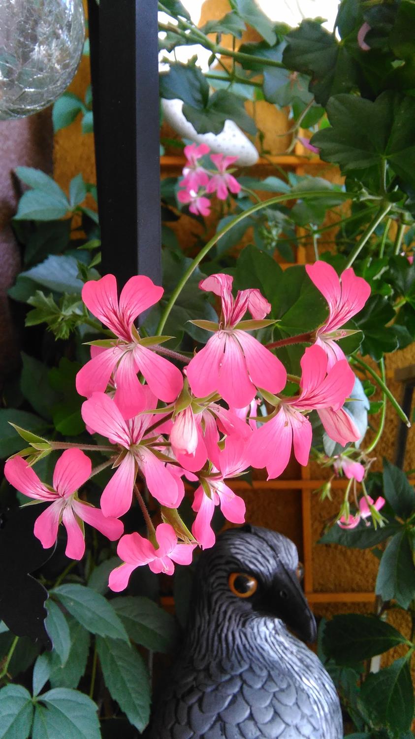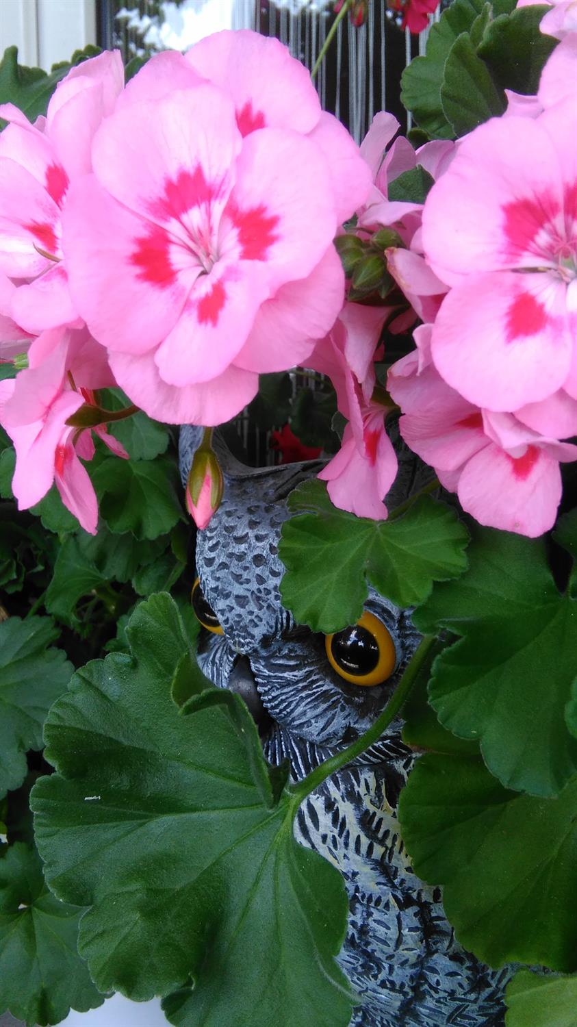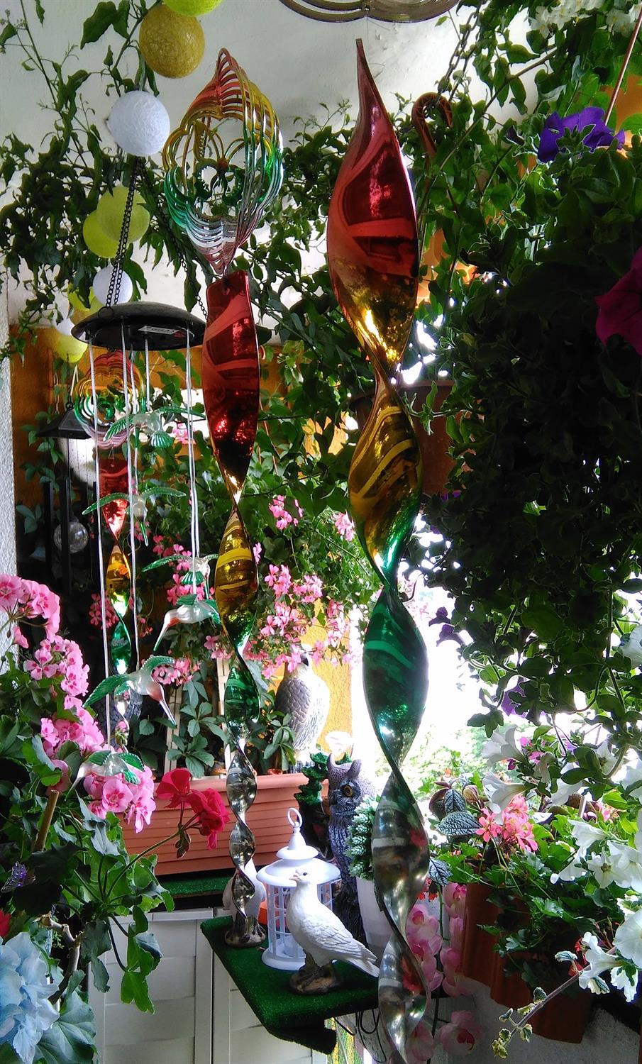 - Jak lustrzane sople miały przede wszystkim odstraszać stąd gołębie, które próbowały się zagnieździć pośród kaskadowych pelargonii. Wtopiły się jednak w tło kwiatów o ciepłych energetycznych barwach. Co cieszą oko. Pozytywnie nastrajają. Nawet w pogodę pochmurną... ocieplają klimat, a poza tym pięknie pachną - opowiada p. Anna.