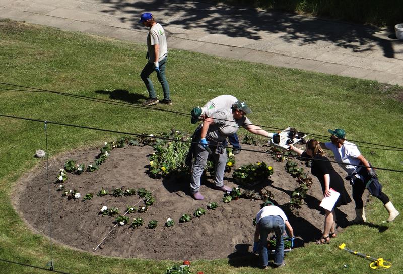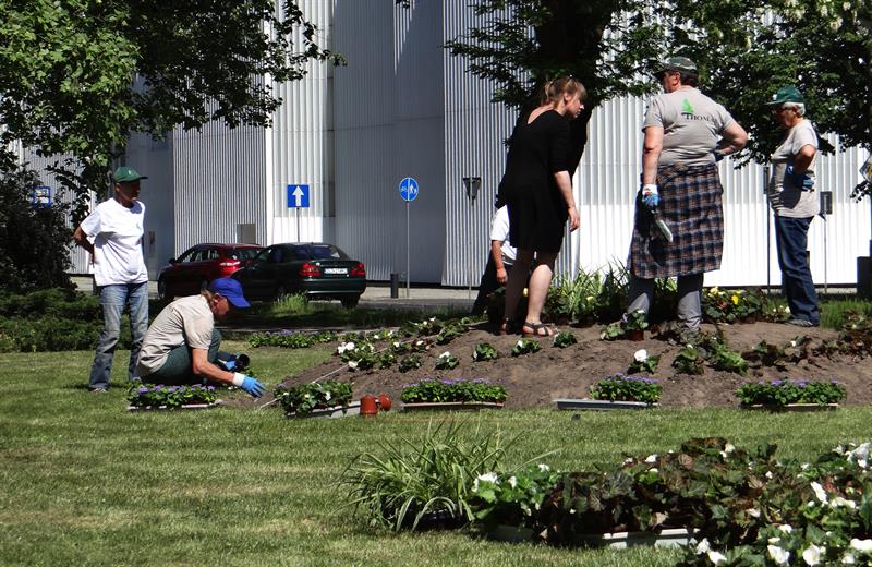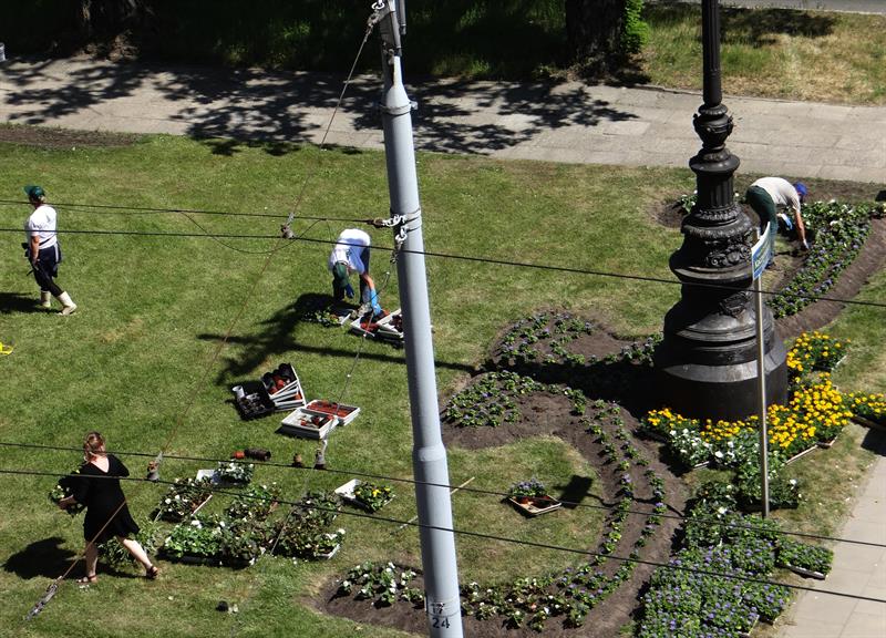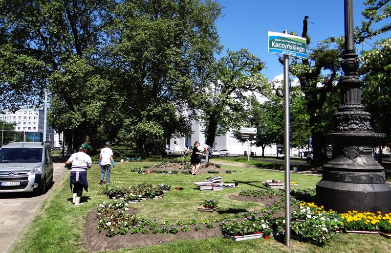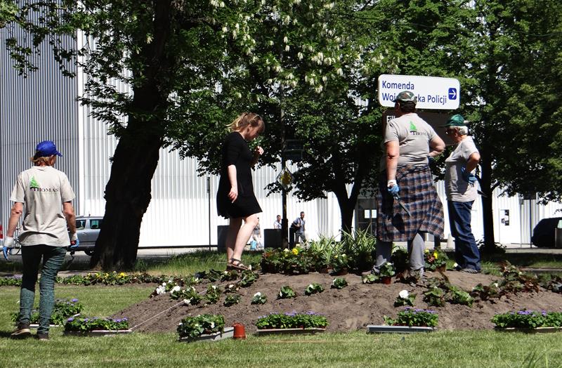 Na zdjęciu: Trwa układanie kwiatowych kobierców na skwerze Lecha Kaczyńskiego, przy Bramie Królewskiej. Za nasadzenia odpowiadają głównie pracownice firmy Thomas.