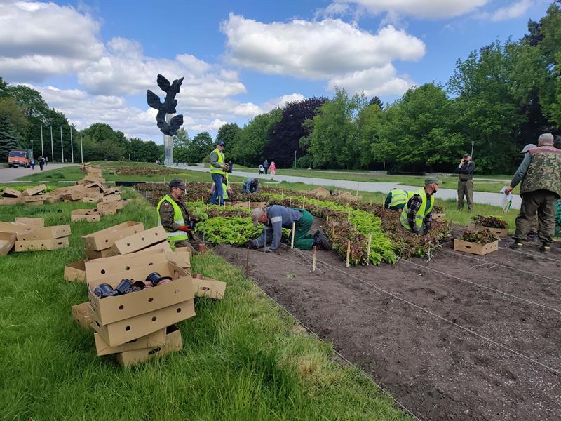 Kwietniki przy "orłach" są ogromne - zajmują powierzchnię 828 mkw. Właśnie rozkwitają kolorami niemal 21 tysięcy ozdobnych roślin. Nasadzenia z koleusów kosztować będą około 100 tysięcy złotych.
