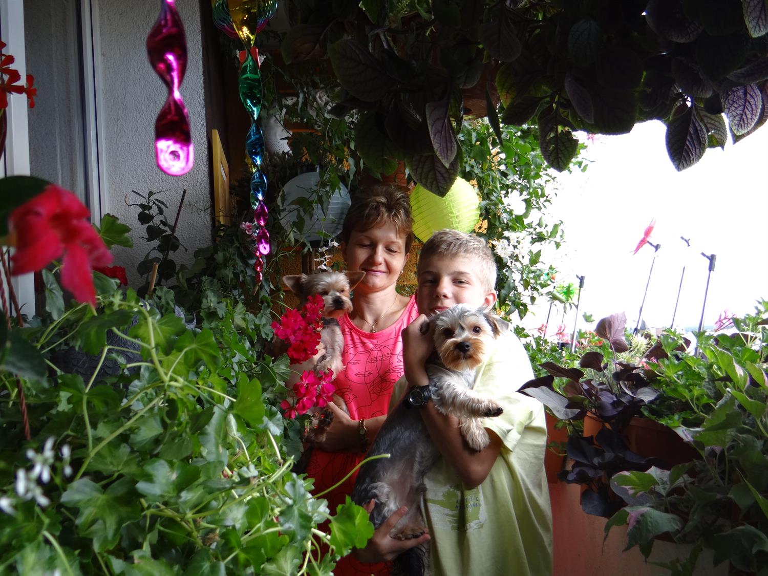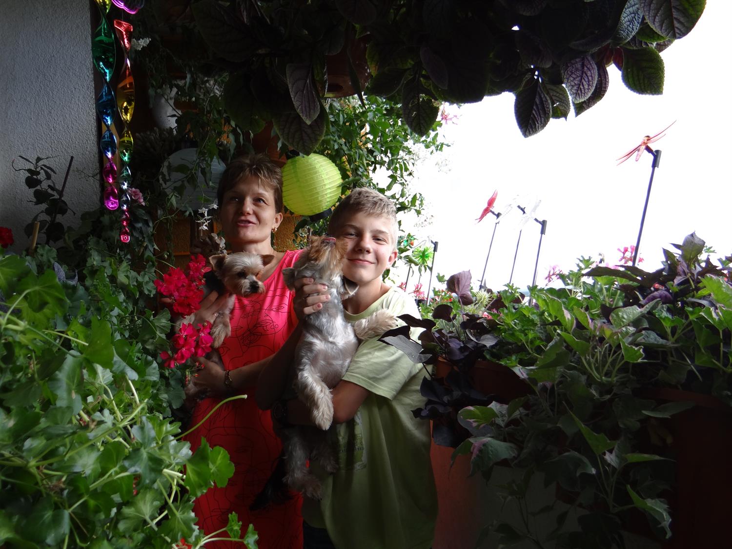 Wśród morza kwiatów nie brakuje i innych dekoracji. Najwięcej tych, co po zmroku rozświetlają ów „ogród na wysokościach”. Są więc łańcuchy LED-owych lampionów, solarne ważki i motyle. Są latarnie i „śnieżne” kule, a nawet gliniane słońce wraz z księżycem. Balkonu strzeże też figura psa, podobnie jak dwa małe żywe psy gospodarzy, tyleż sympatyczne, co chętne do zabawy z gośćmi. ©℗
