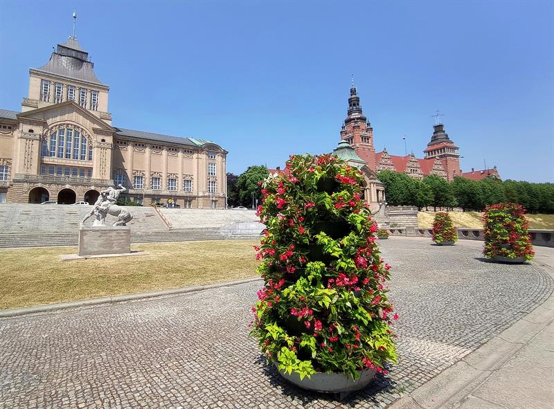 W najbardziej znaczących punktach Szczecina stanęły kwiatowe wieże: od Dworca Głównego po „szpinakowy pałac". Podkreślają urok zabytkowych murów oraz terenów najchętniej odwiedzanych przez szczecinian i turystów. Jednak najefektowniej - jak widać - te szczególne kompozycje z begonii i pelargonii się prezentują na Wałach Chrobrego.