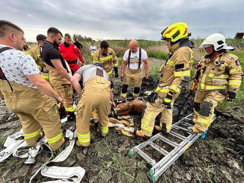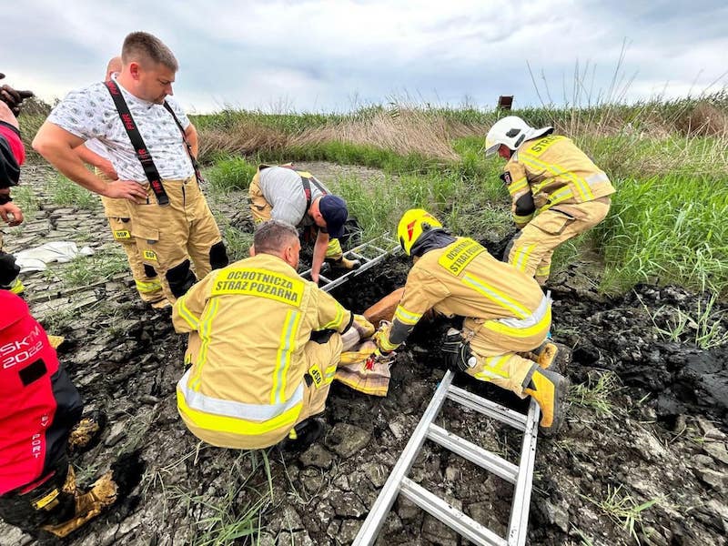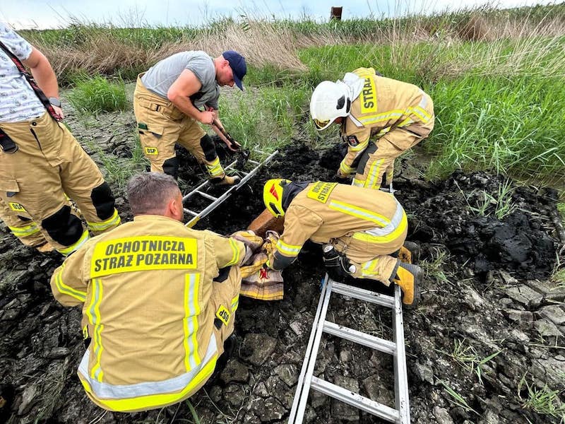 Tak stało się w środę po południu w Międzywodziu, gdzie przy ul. Zatocznej w grząskim gruncie utknęła łania. Zwierzę nie było w stanie wydostać się o własnych siłach, więc do pomocy wezwano strażaków - ochotników. W akcji jego oswobadzania udział wzięli druhowie aż z trzech jednostek: OSP Dziwnów, OSP Miedzywodzie i OSP Kołczewo. Dostęp do łani ułatwiły im strażackie drabiny rozłożone na niestabilnym podłożu. Cała akcja zakończyła się sukcesem i zwierzę zostało uwolnione z błotnej pułapki.