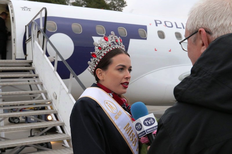 Do czekających na płycie goleniowskiego lotniska fotoreporterów i dziennikarzy wyszła w srebrzystej koronie Miss Polski, świetnie się komponującej z granatowym uniformem stewardessy. Powiedziała, że będzie godzić obowiązki związane z otrzymanym tytułem oraz pracę zawodową, z której nie zamierza rezygnować.